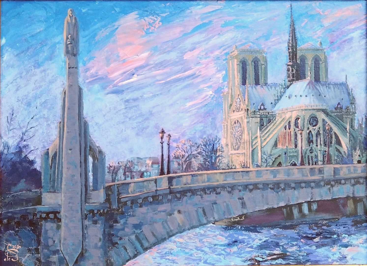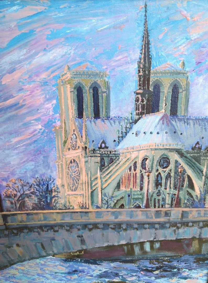 Работа была написана в марте 2019 года. Примерно за месяц до большого пожара, который уничтожил часть собора, в том числе его шпиль. Этот шпиль ныне уже восстановлен, но на моей работе он ещё существует в св