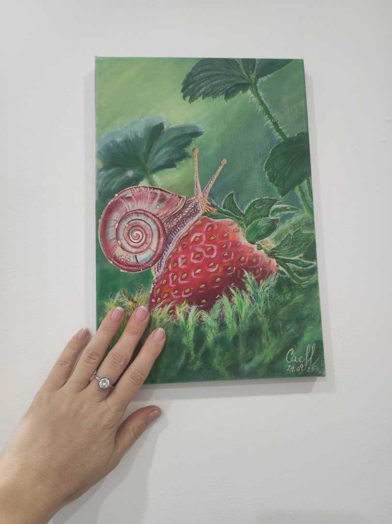 Картина "Сочный взгляд" написана акрилом, использован холст на подрамнике 20*30см.