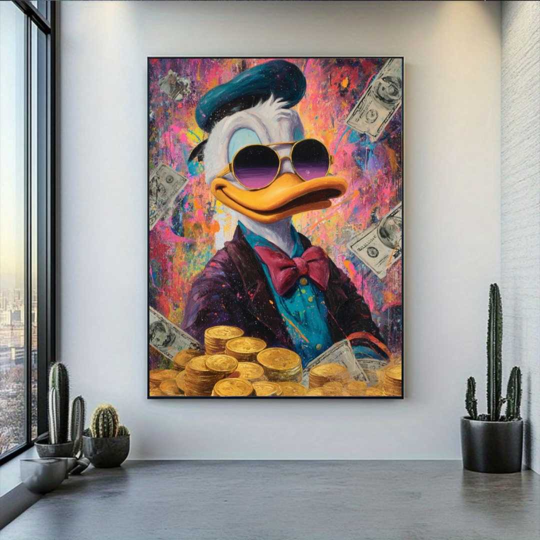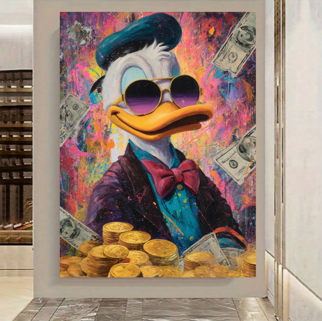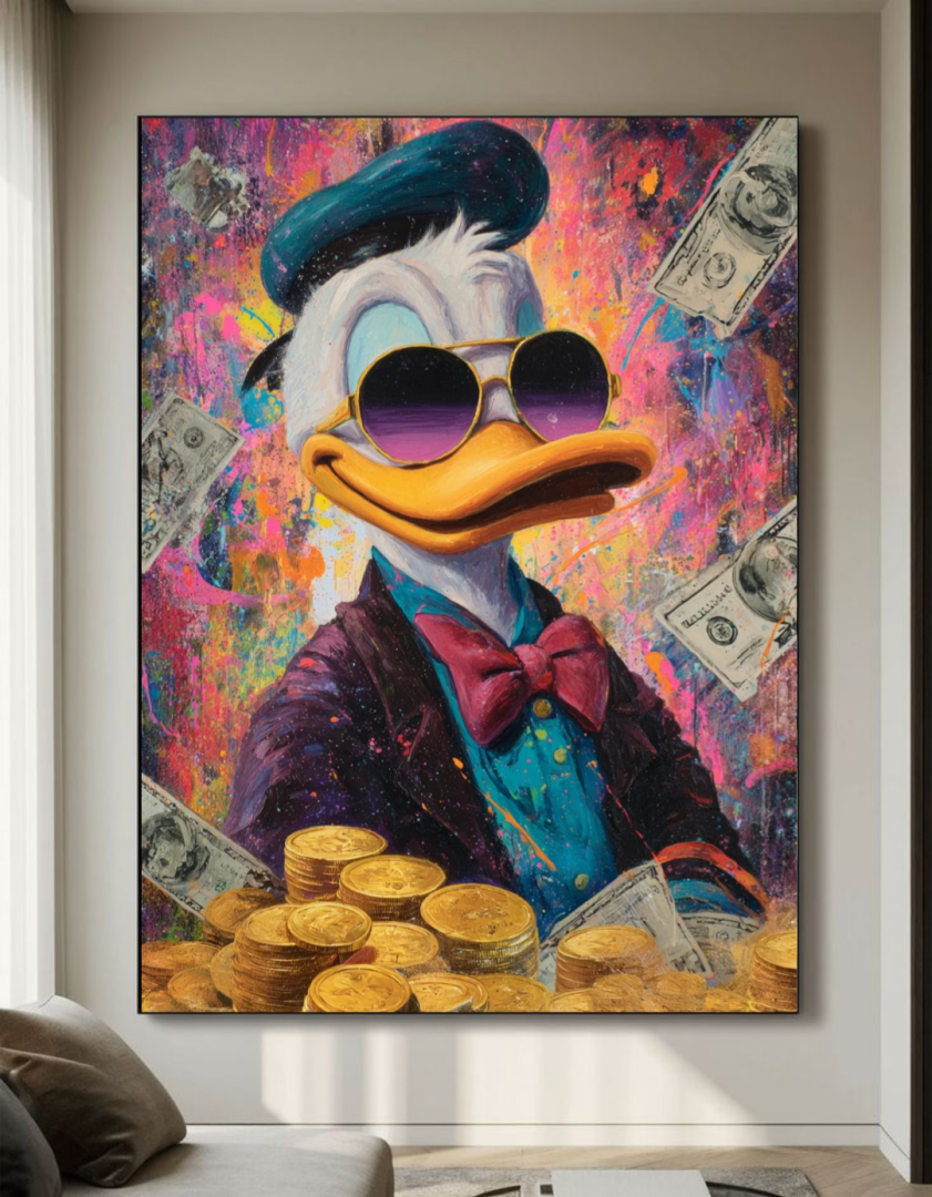 ьте яркий штрих в ваш интерьер с этой стильной картиной маслом в стиле поп-арт — изображением легендарного Скруджа Макдака! Эта насыщенная, динамичная работа сочетает в себе классику комиксов и современное искусство. Яркие цвета, контрастные линии и характерные черты делают её притягательной и насыщенной энергией. Эта картина станет настоящим акцентом в комнате, подчеркнув ваше чувство юмора и любовь к ярким, необычным вещам.