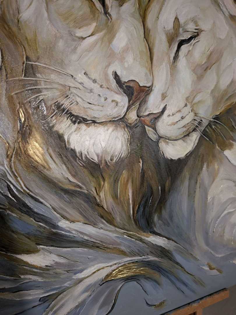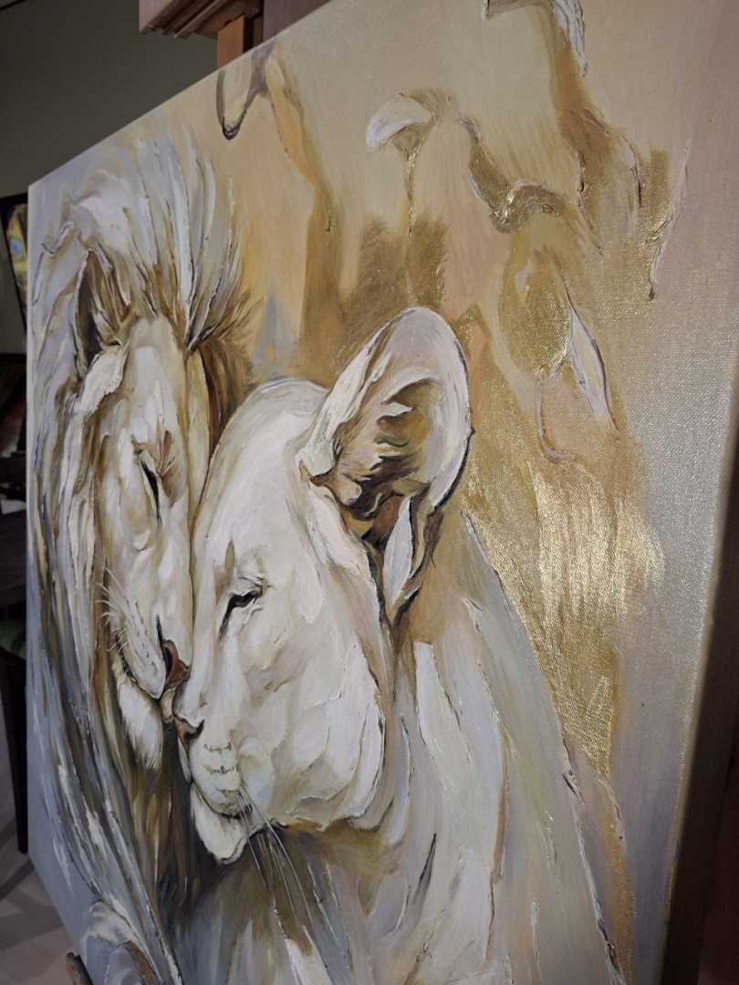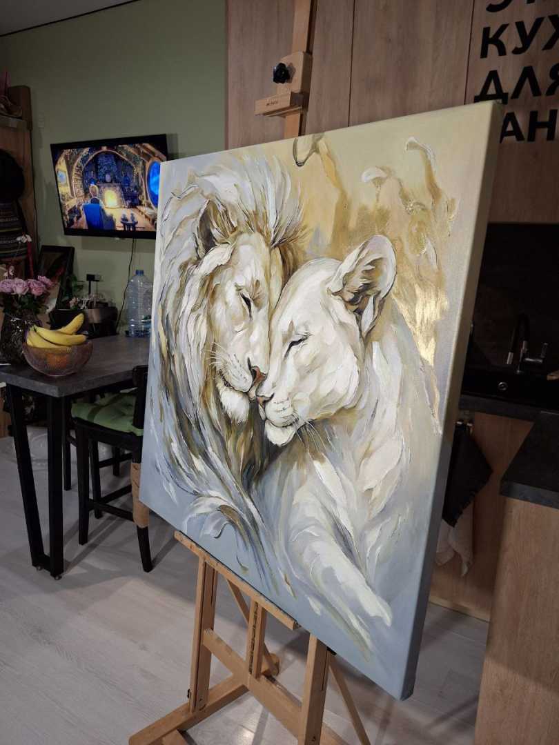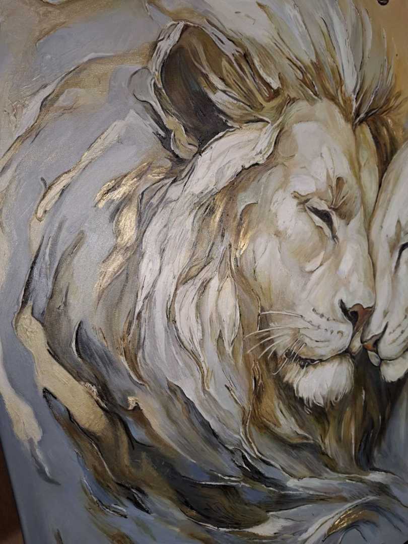 этих величественных животных. Для меня лев — это воплощение защиты, а львица — нежности и преданности. Я писала эту картину с мыслью о том, что дом — это место, где мы можем быть собой, где нас всегда примут и защитят. Надеюсь, эта работа принесет в ваш дом энергию гармонии и станет символом вашей нерушимой связи