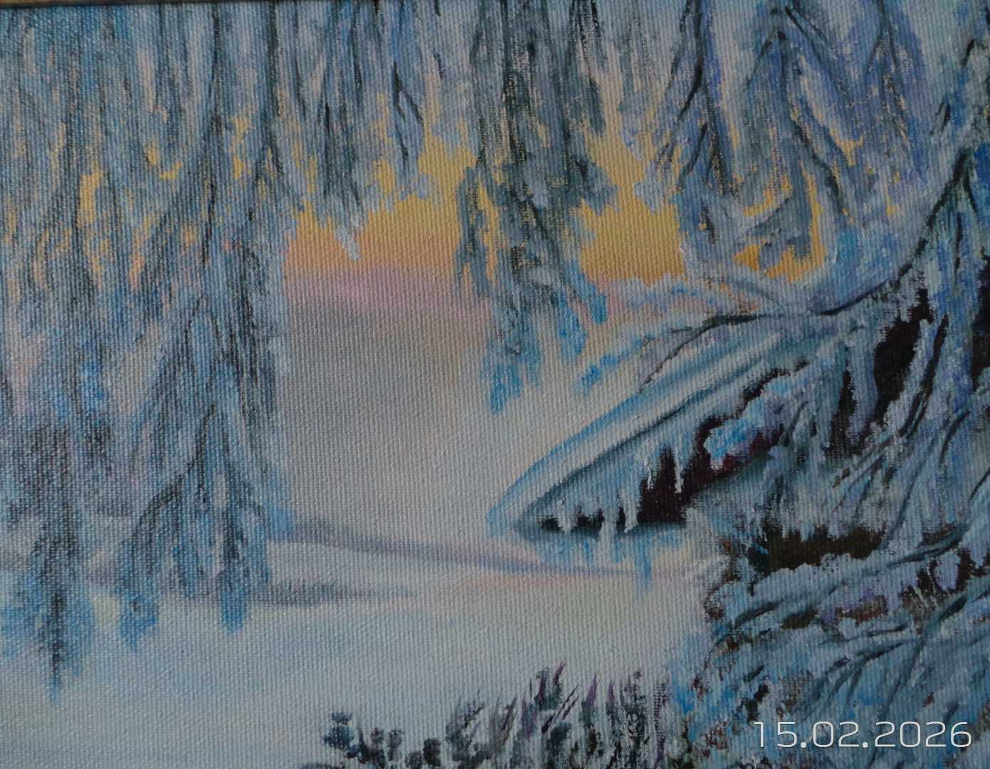 "Зима расписала уголок природы нежными оттенками белого, голубого и золот