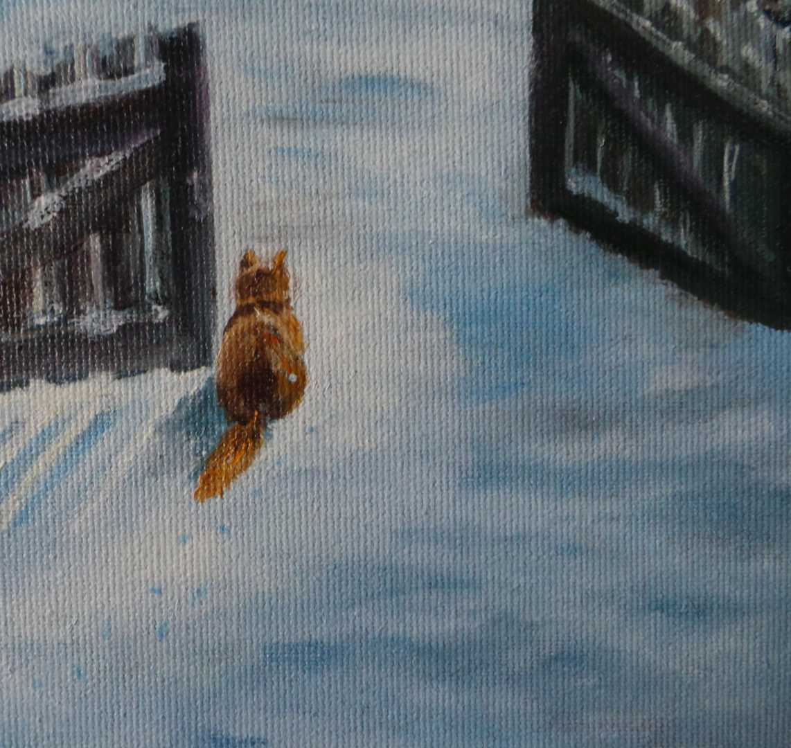Эта картина из серии: Жизнь кота. В нашей семье живет большой сибирский рыжий пушистый кот. Размышляя над тем как бы ему жилось в разных условиях, я написала разные варианты. Это вторая картина из этой серии.
