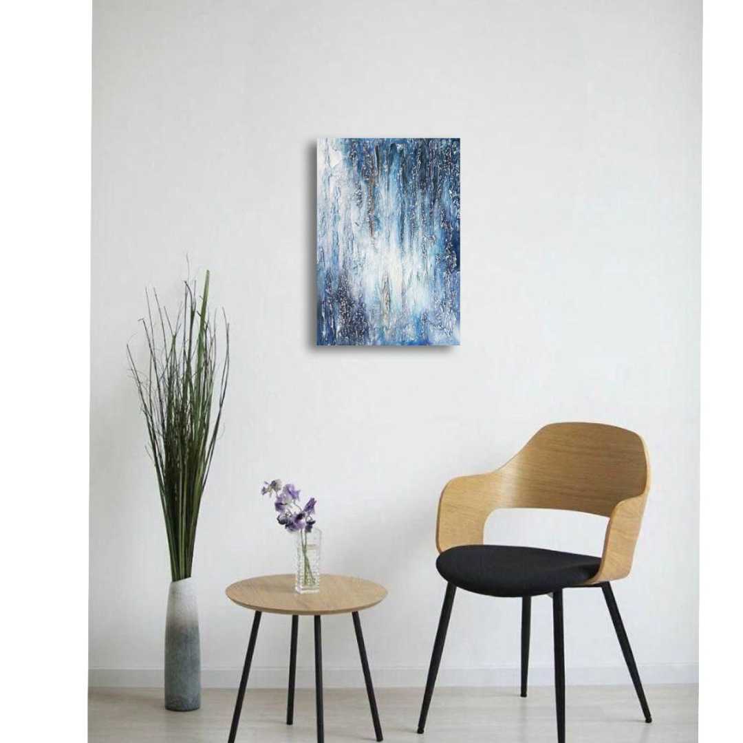 Картина написана на льняном холсте с использованием текстурной пасты акриловыми красками. Покрыта лаком для хорошей сохранности.Торцы прокрашены в цвет картины. Вешать картину можно сразу, шнур прикреплен. Исполнена в современном абстрактном стиле, не требует рамы.