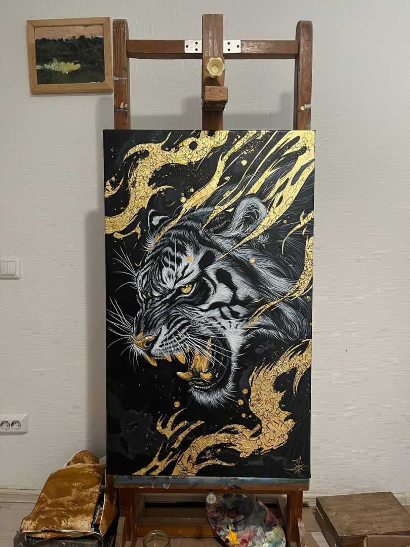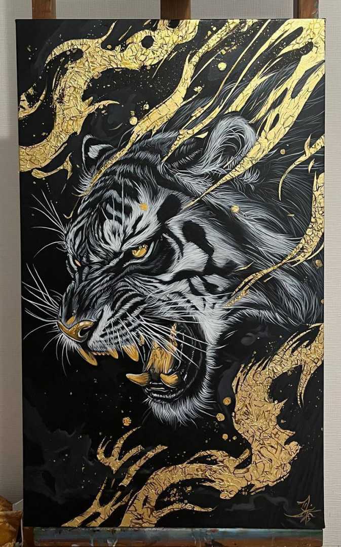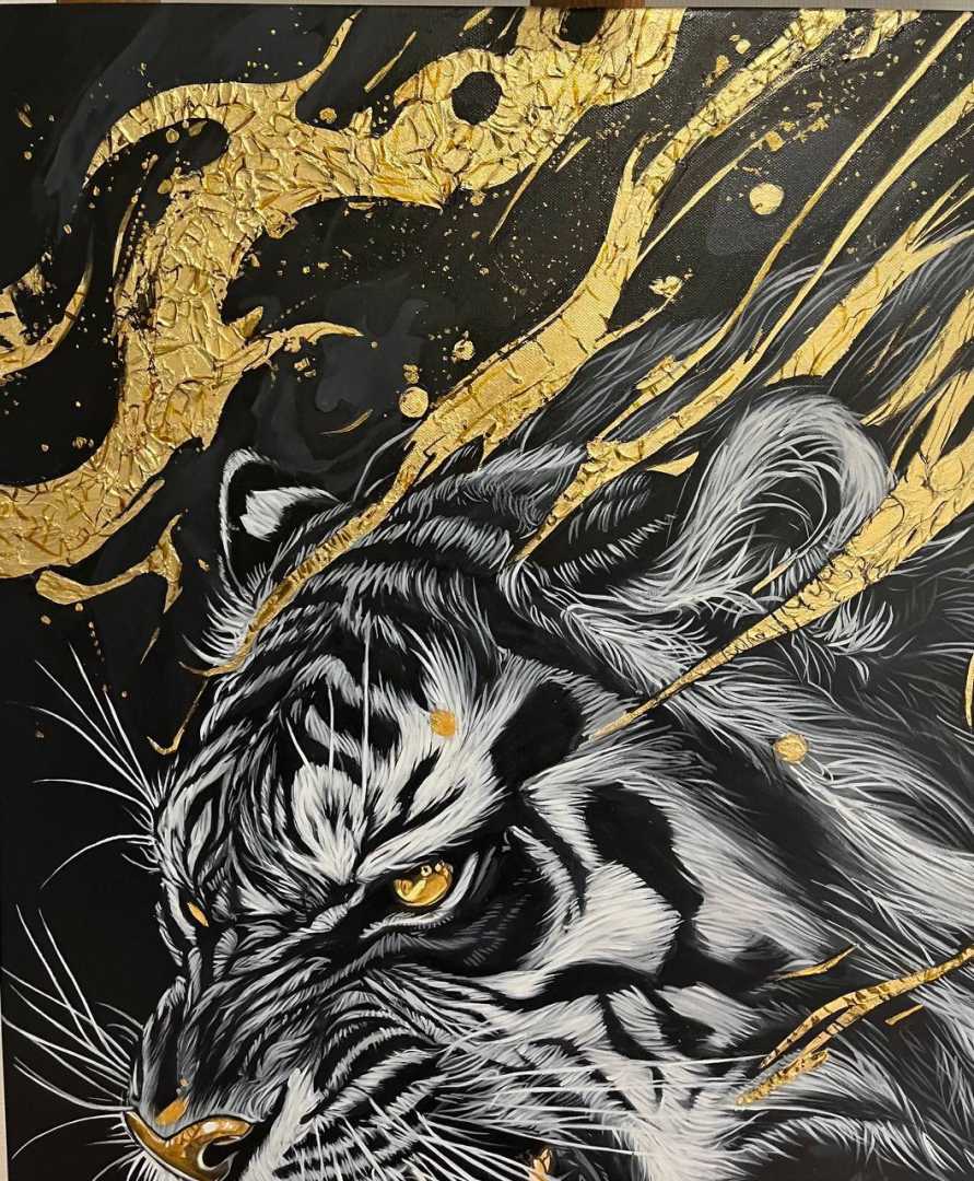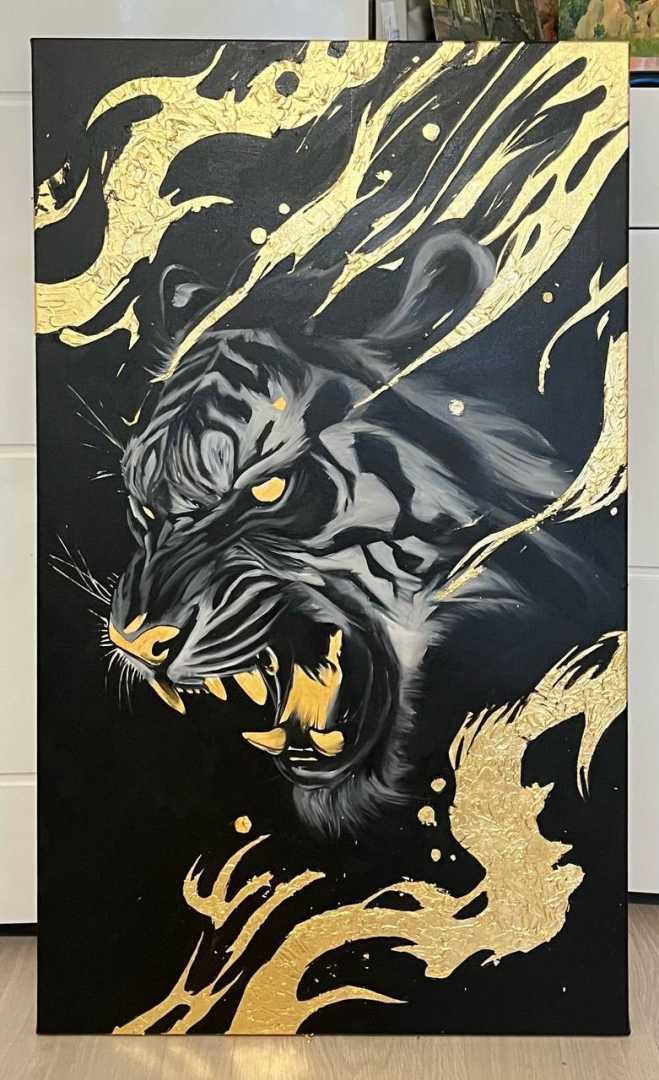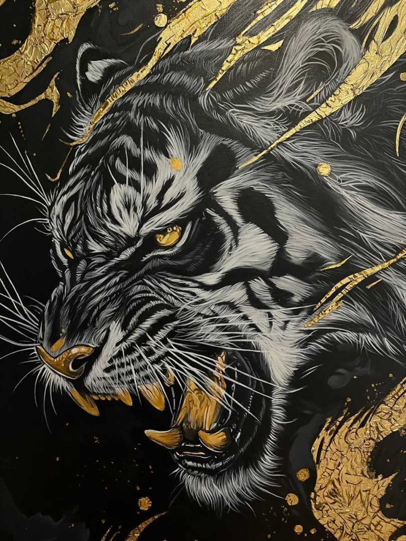 "Золотая Ярость" — это идеальный выбор для тех, кто ценит индивидуальность, смелый дизайн и глубокий символизм. Тигр — древний символ силы, защиты, мудрости и независимости, и эта картина станет мощным талисманом для вашего дома или ра