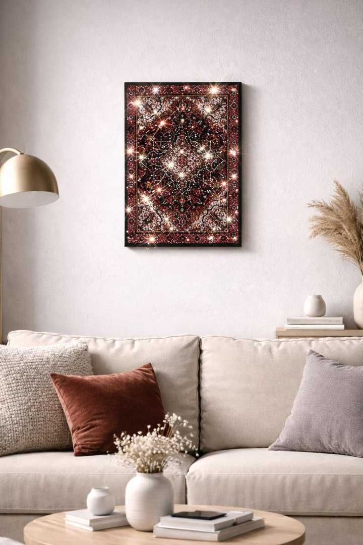 Картина «Ковёр из 90-х» — это синтез ретро-эстетики и современного гламура. Она подарит вашему пространству игру цвета и света, а также станет поводом для тёплых воспоминаний!