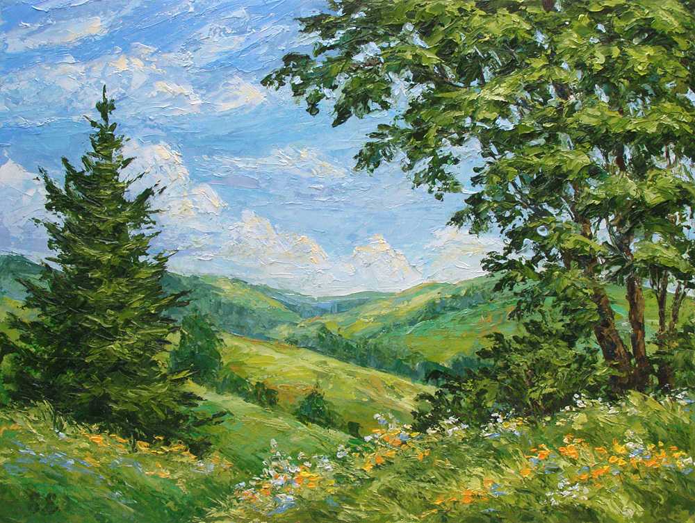 Эта небольшая картина полностью написана мастихином объемными мазками.