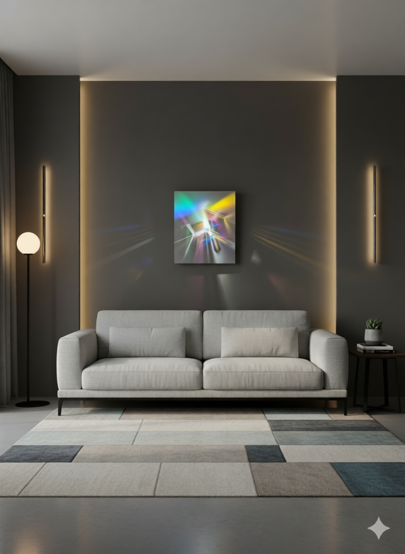 Свет никогда не бывает неподвижным. В каждом луче скрыта энергия движения, стремление к свободе. Эта картина — напоминание о том, что даже в самой статичной форме жизни всегда найдётся место для танца и игры.