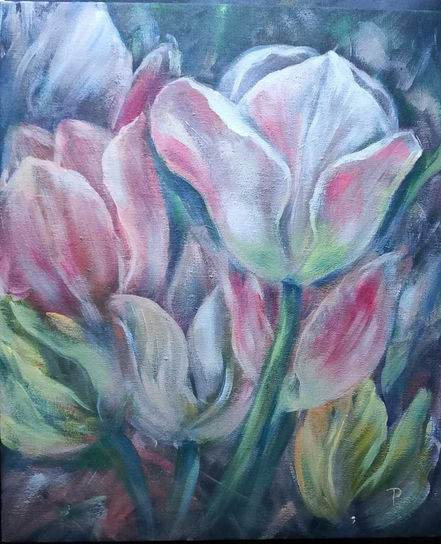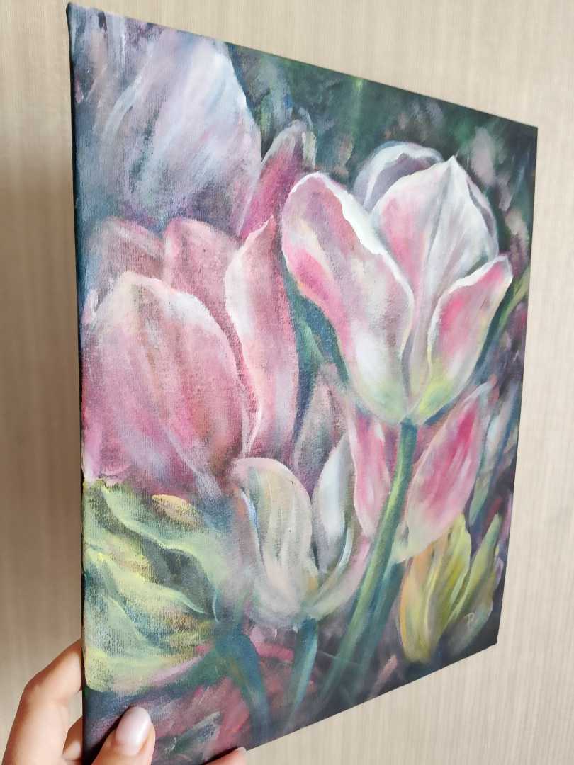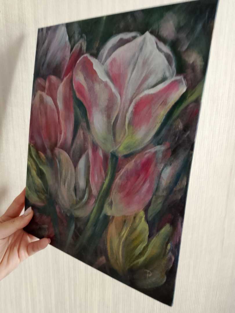 Эффектная авторская картина с тюльпанами