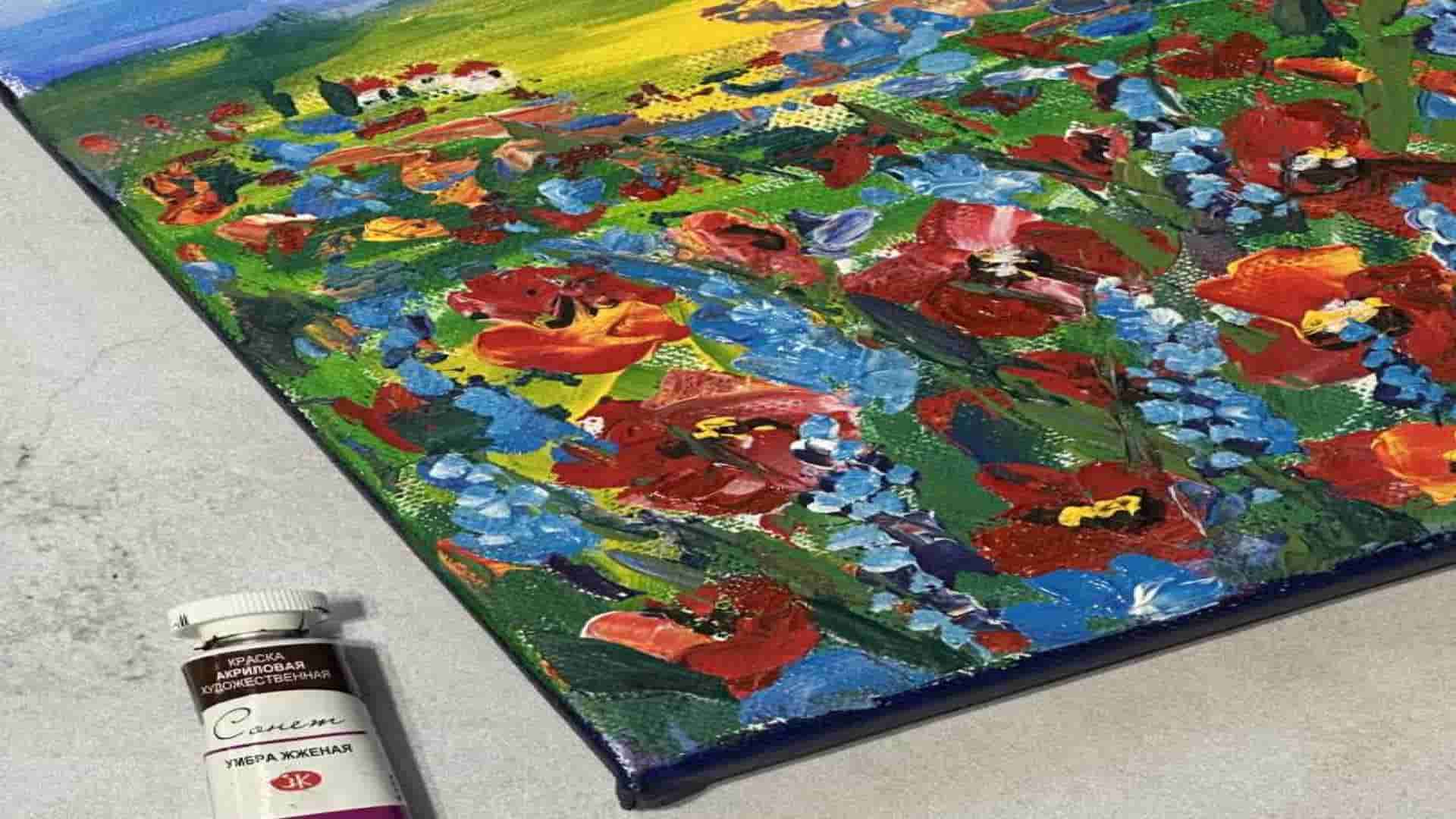 картина маки, маковое поле, красные маки картина, полевые цветы, яркая картина, акрил цветы, авторская живопись, современная картина цветы, интерiерные цветы