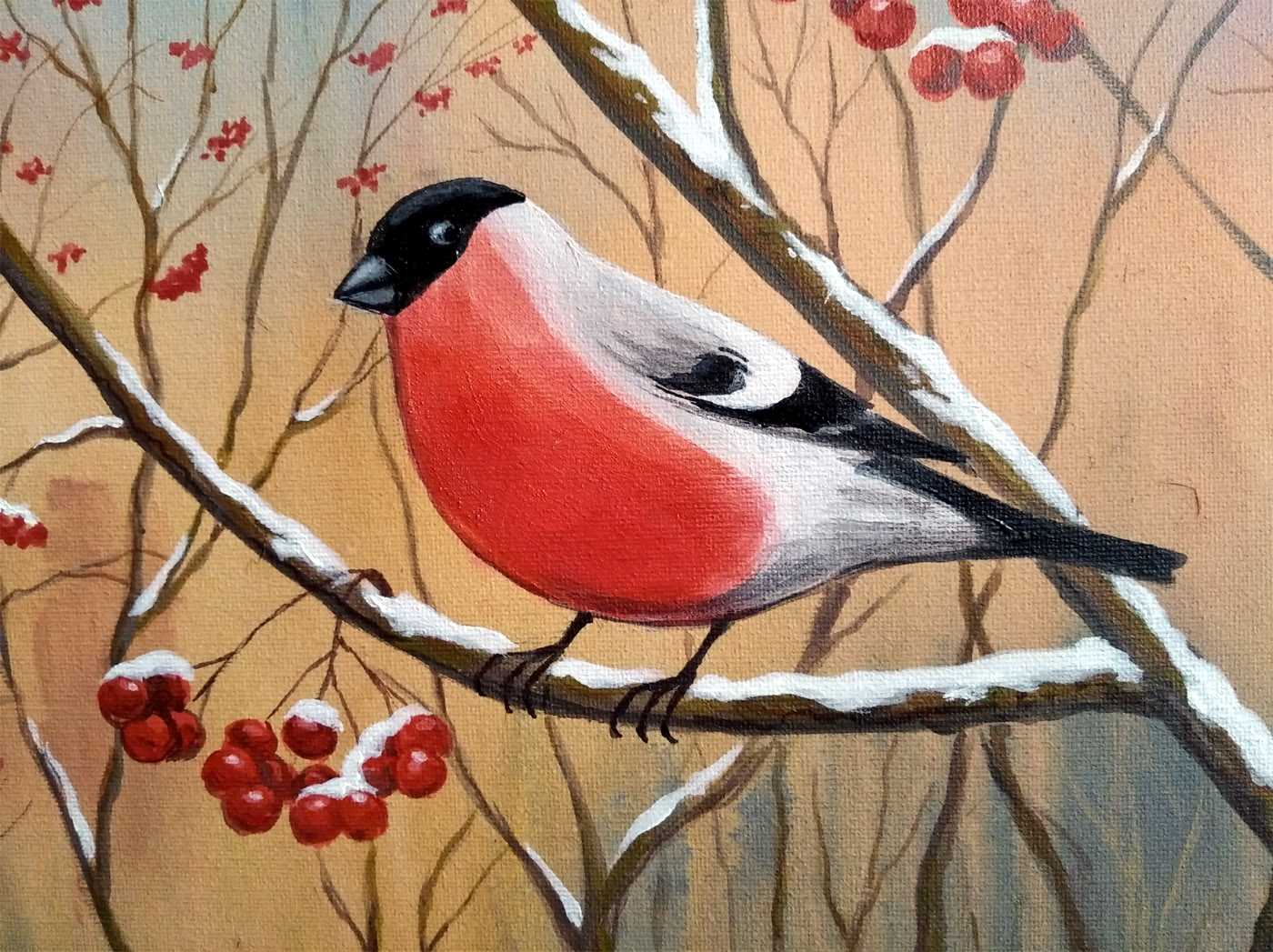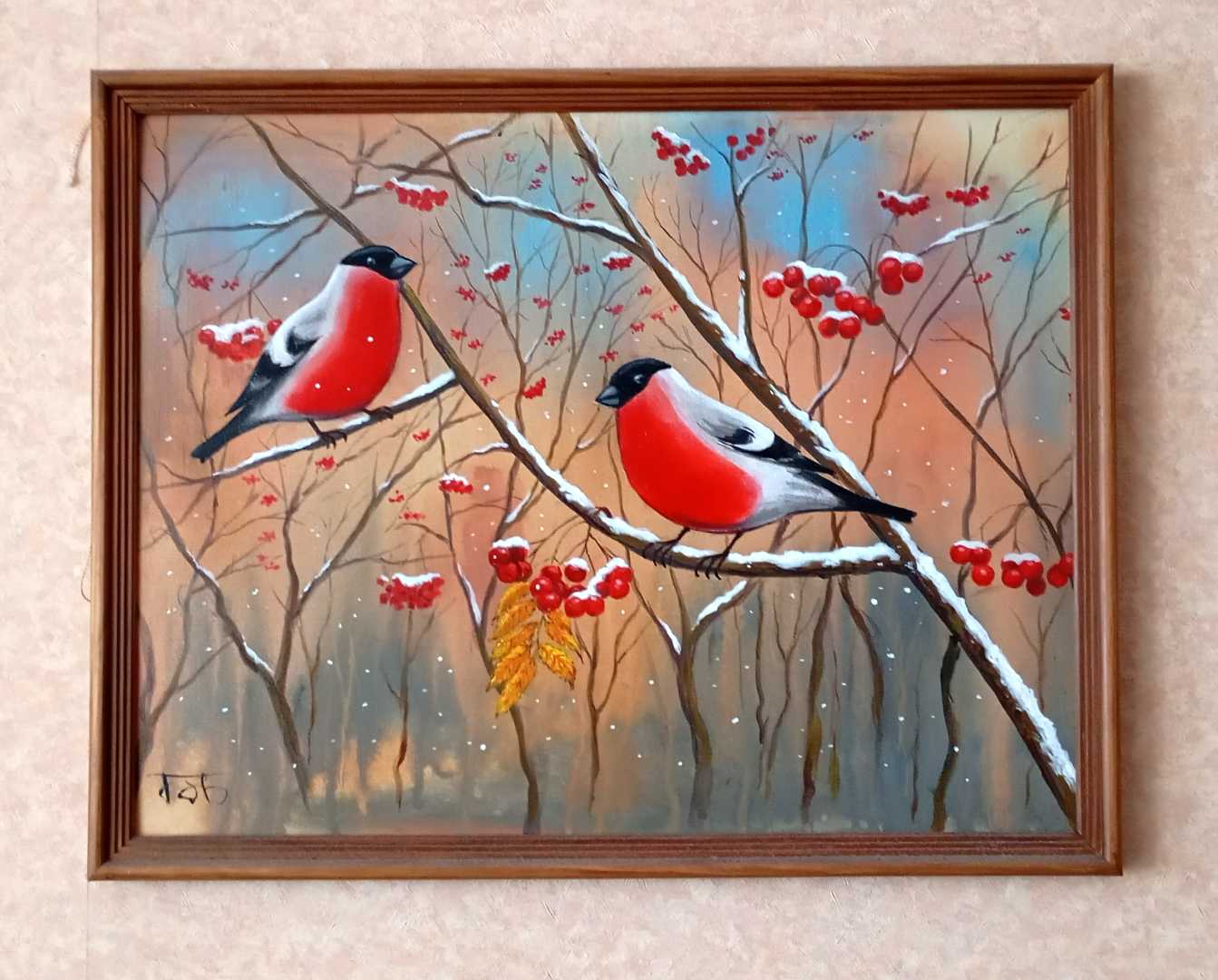 Первый снег, снегири прилетели! И украсили собой ветви рябины.. красное с красным - единственное яркое пятно вокруг. Остальное печально - начало зимы, унылые деревья в ожидании предстоящей зимы.