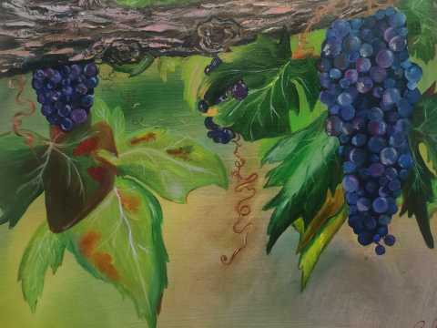 Яркая красочная арт- работа. Иллюстрация к увиденному сну. Беленая стена с трещинами. Яркие сочные и разноцветные ягоды на тоненьких,проросших из трещин веточек.