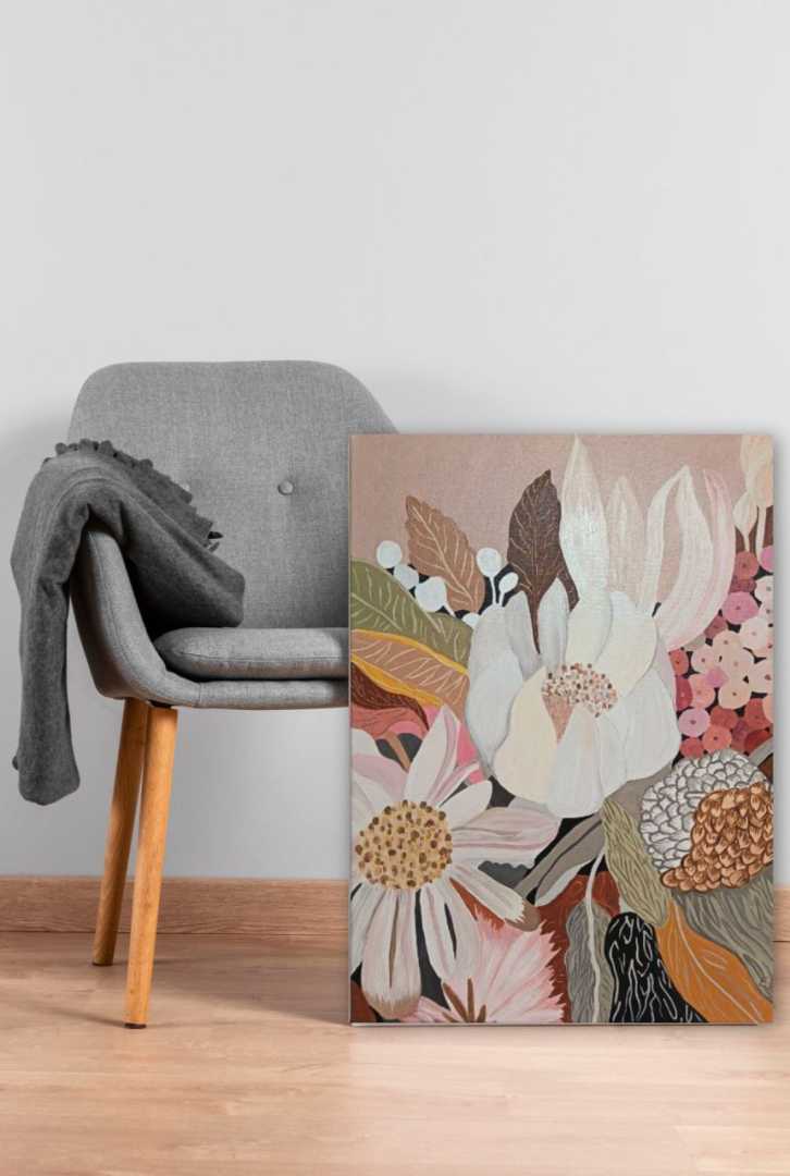 Это не портрет природы — это декоративный акцент, созданный для того, чтобы оживить интерьер. Идеально подходит для тех, кто ценит уют, элегантность и современную графичность в одном полотне.