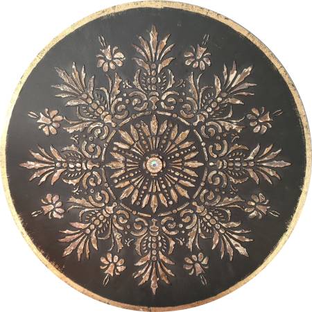 Картина вдохновлена японским искусством восстановления разбитой керамики с помощью золотых или серебряных линий, которые подчеркивают трещины вместо того, чтобы их скрывать. На полотне изображен круг, словно разбитый на несколько частей и вновь соединенный. Цветовая палитра – оттенки белого, голубог