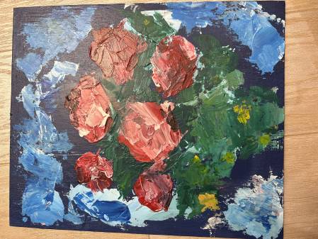 Картина "Розы, букет" маслом на холсте. Без рамы.