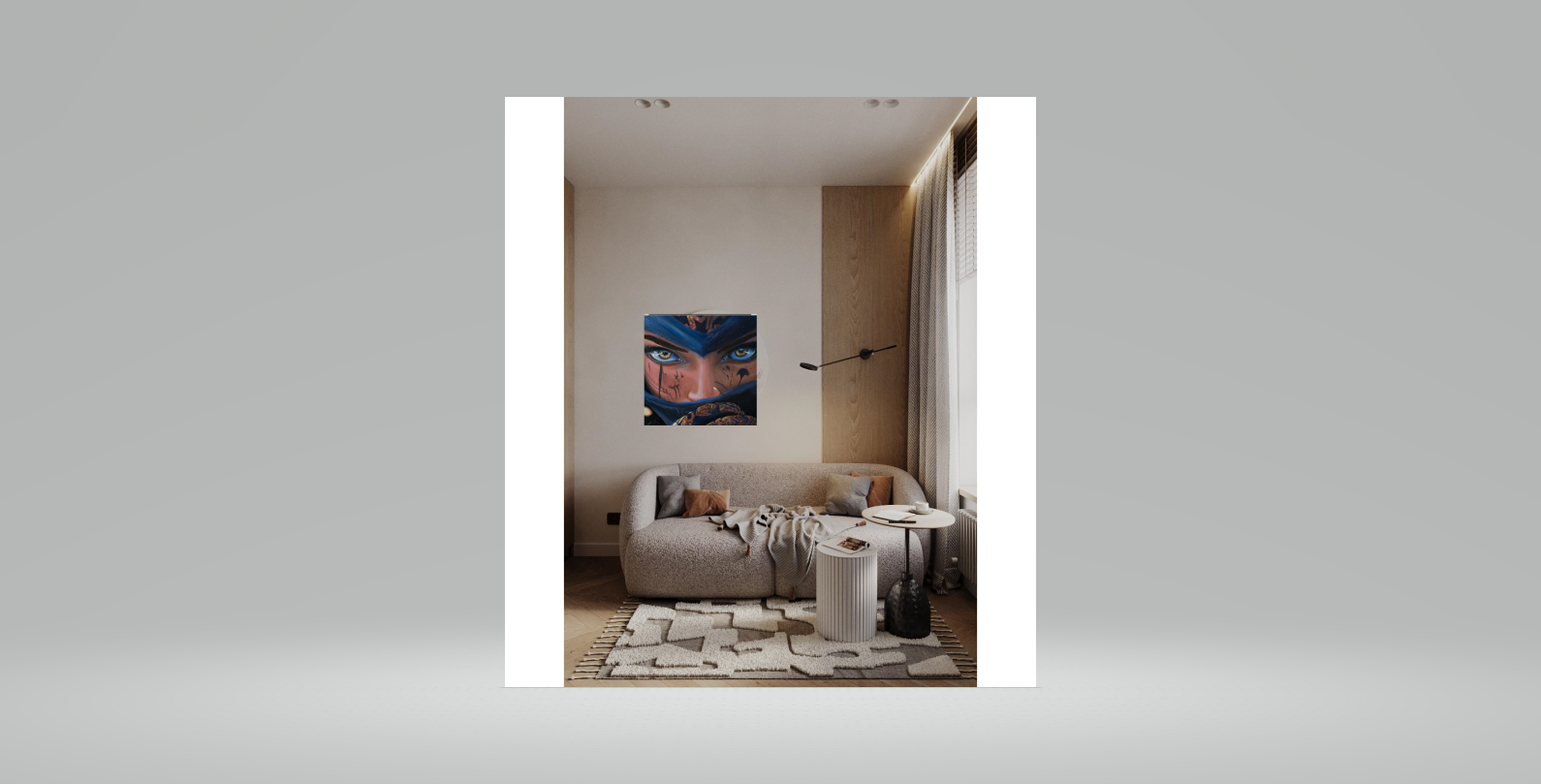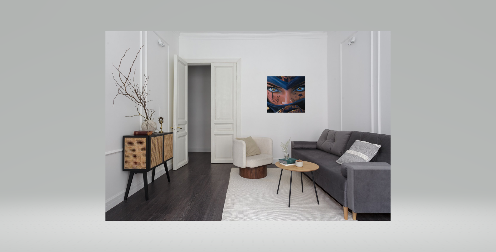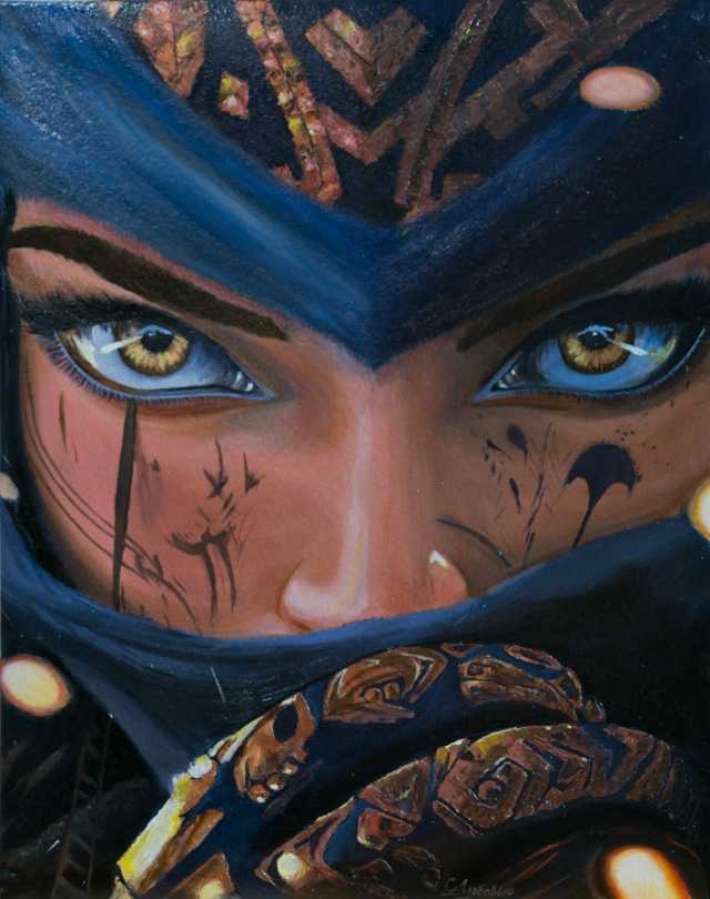 На картине изображены прекрасные глаза девушки воительницы, наполненные решимостью и решительностью. Взгляд девушки наполнен благородными намерениями и целеустремленностью. Ее глаза выражают смелость, уверенность и преданность своему делу.