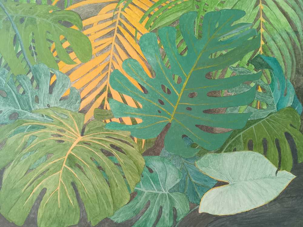 фрагмент тропического леса , листья тропических деревьев собран - ные как бы в плоский букет .