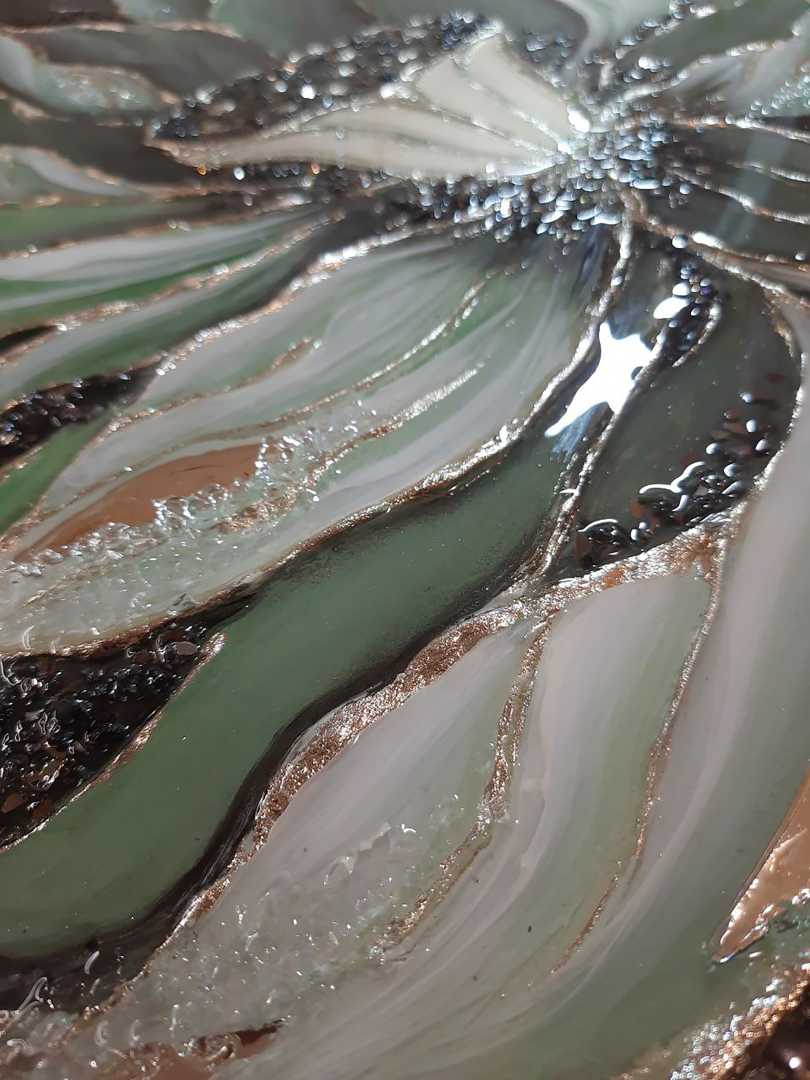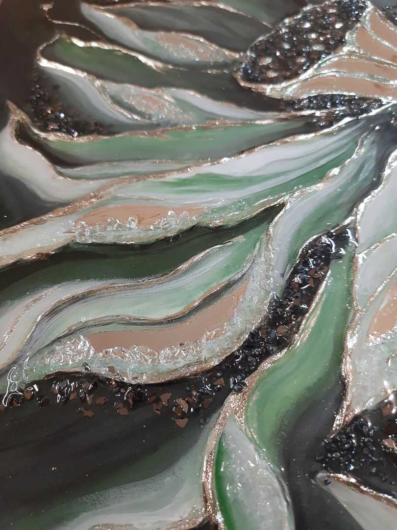 ика: смешанная (акрил, текстурная паста, серебряная поталь, стеклянная крошка, зеркала, эпоксидная смола)