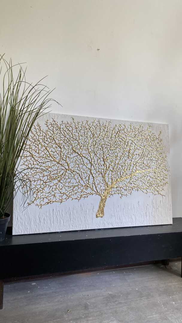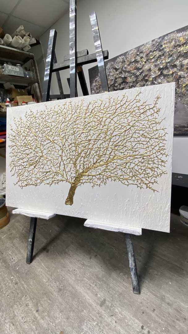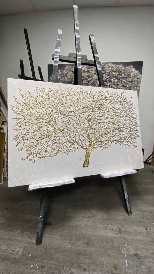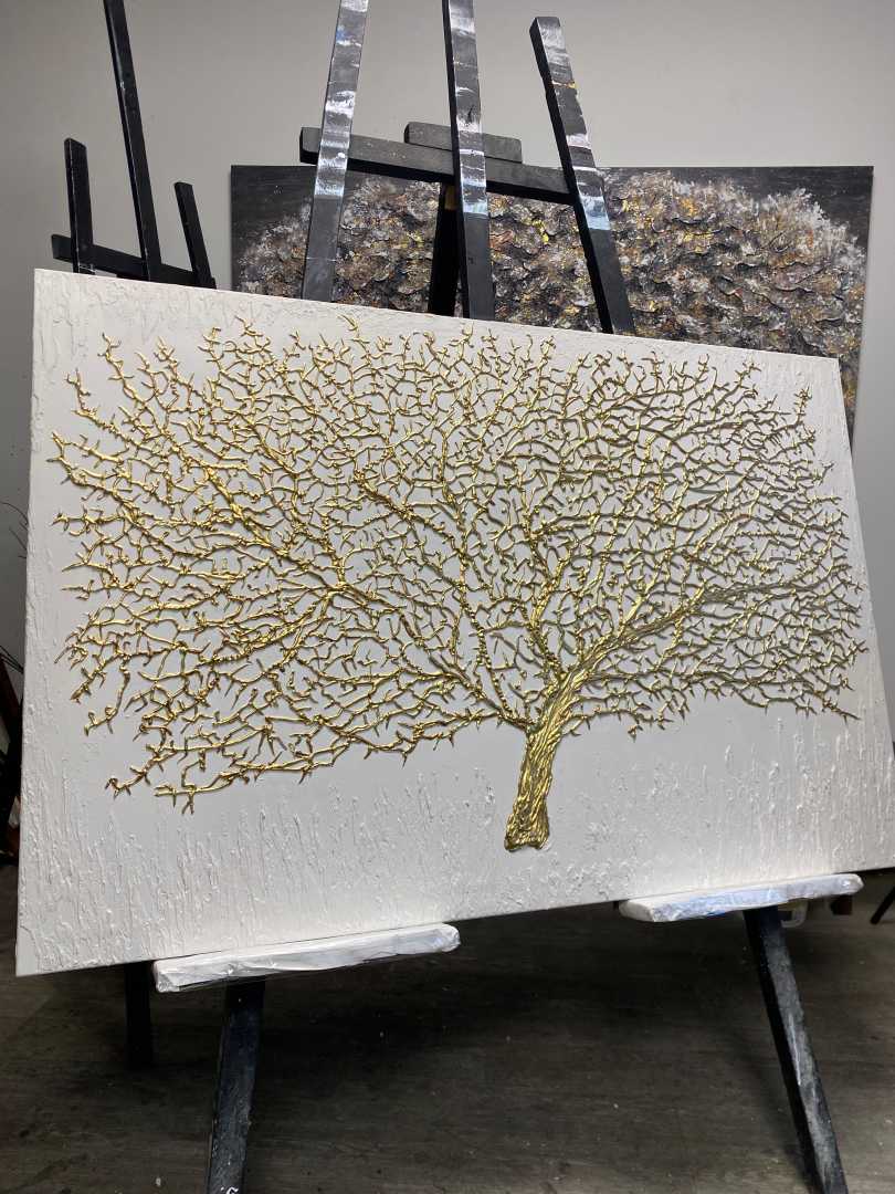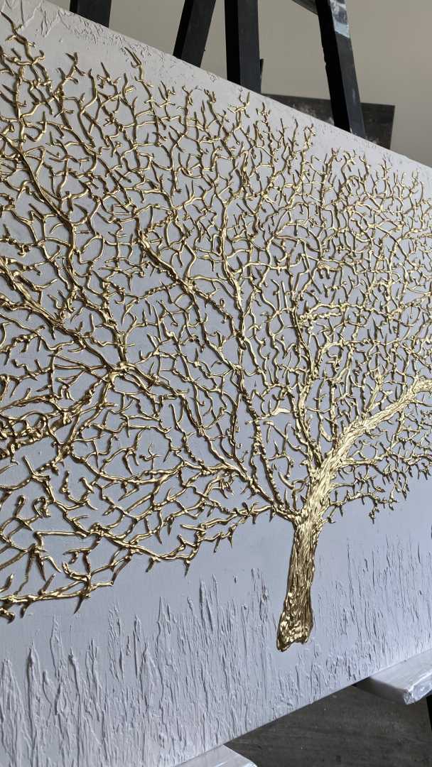 Материалы: холст на подрамнике, текстурная паста, жидкая поталь, акриловые краски