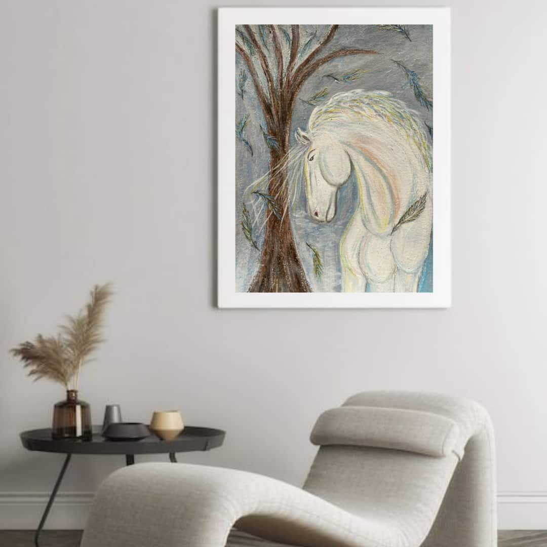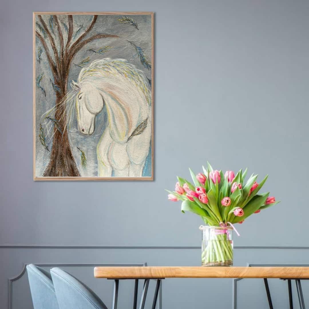 Белый конь, год лошади, картина талисман, символ силы, лошадь в искусстве, животные в искусстве, пастельная живопись, метафорическое искусство, духовное искусство, внутренняя сила, спокойствие, ясность, новый цикл, Eli Devart, авторская живопись, картина на удачу, оберег, символ 2026, белый цвет, живопись акрилом
