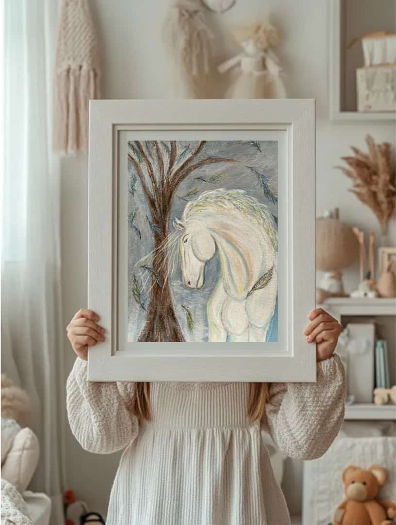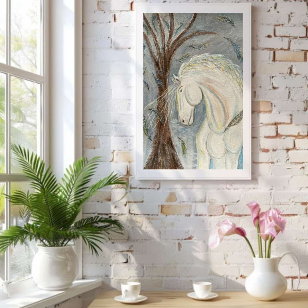 Эта работа — больше, чем картина. Это символ начала нового цикла, обращённый к наступающему году Лошади. Белый конь, возникающий из пространства света и памяти, олицетворяет чистоту намерений, внутреннюю мощь и спокойное движение вперёд.