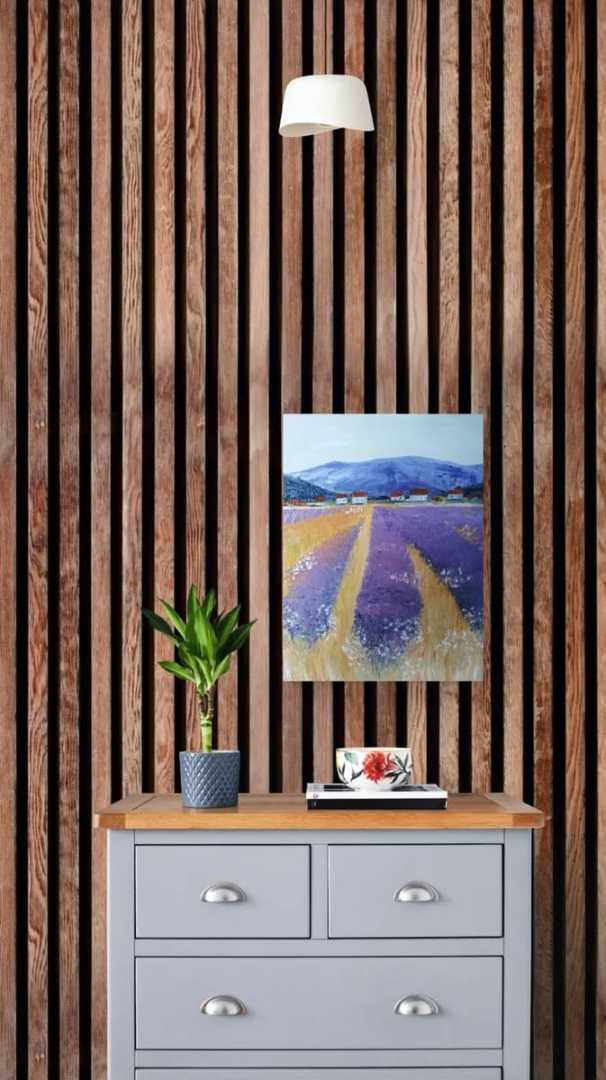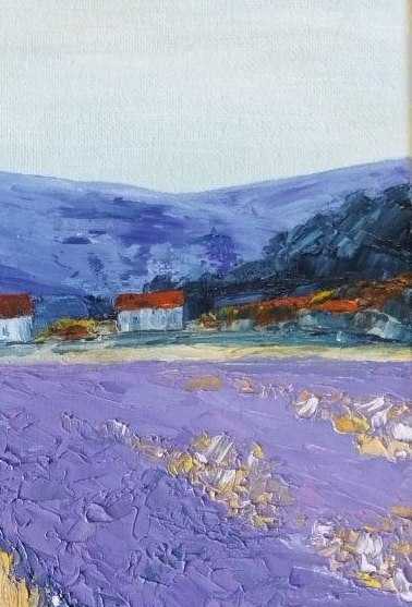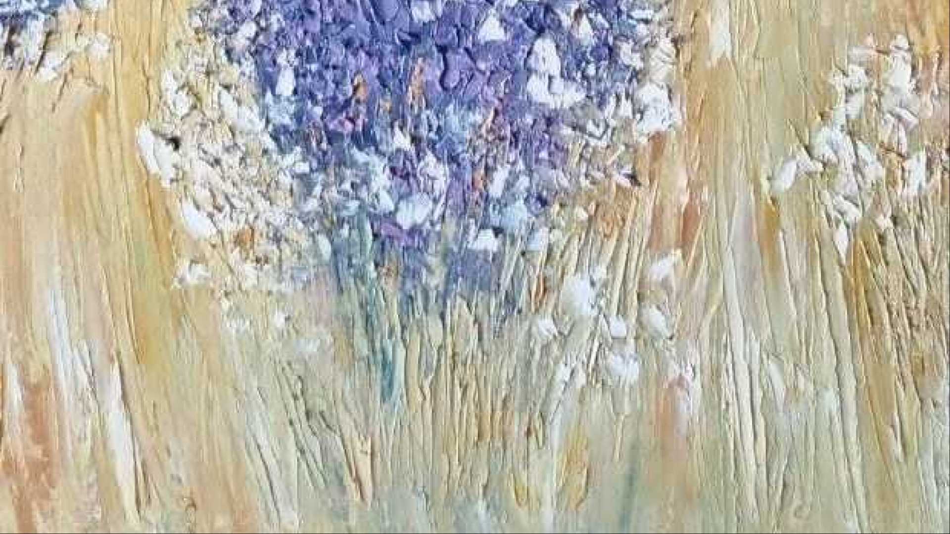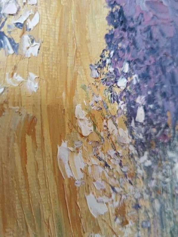 Интерьерная картина. Прованс, лето, запах лаванды. Техника с использованием мастихина. Холст на подрамнике, торцы окрашены в тон картины, хорошо смотрится без рамы.