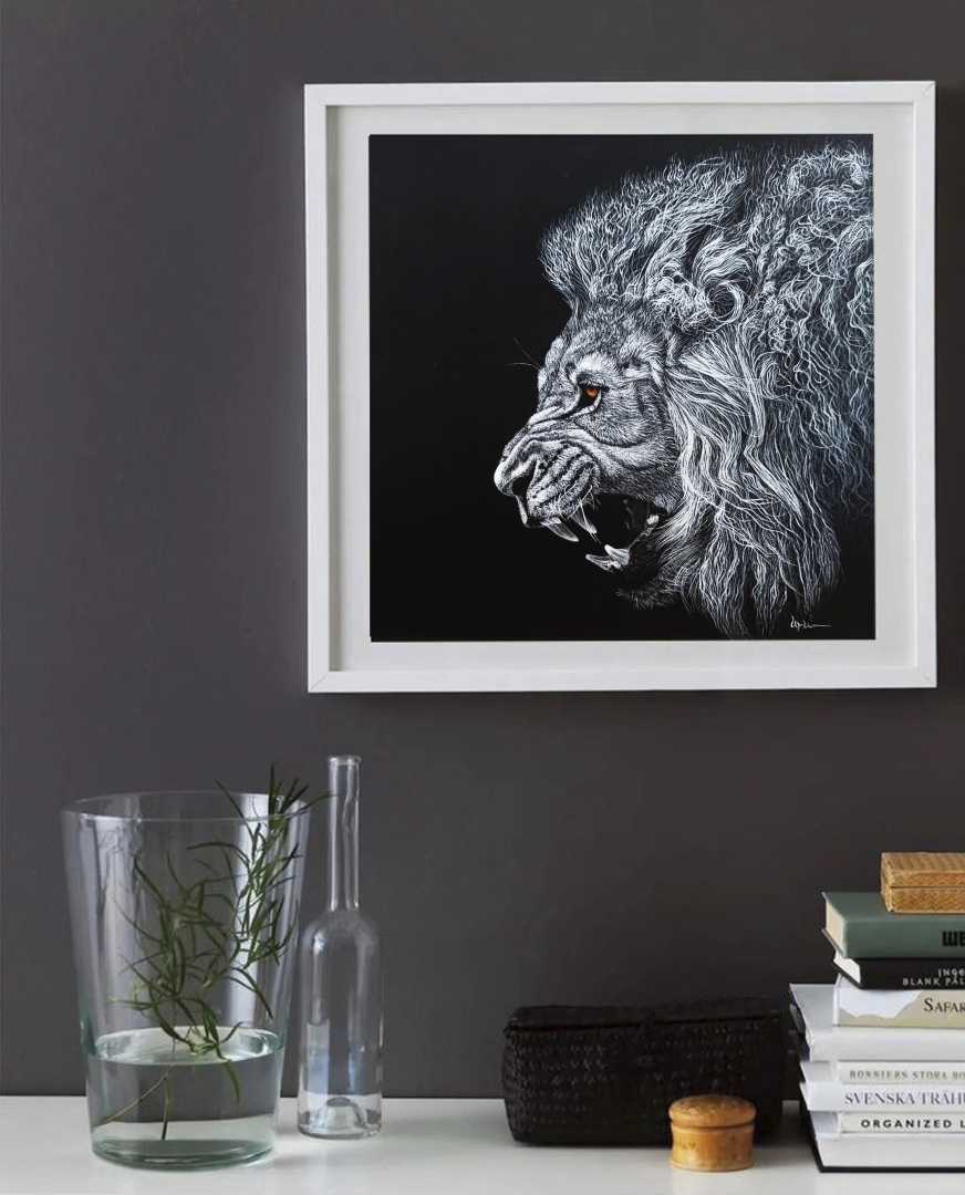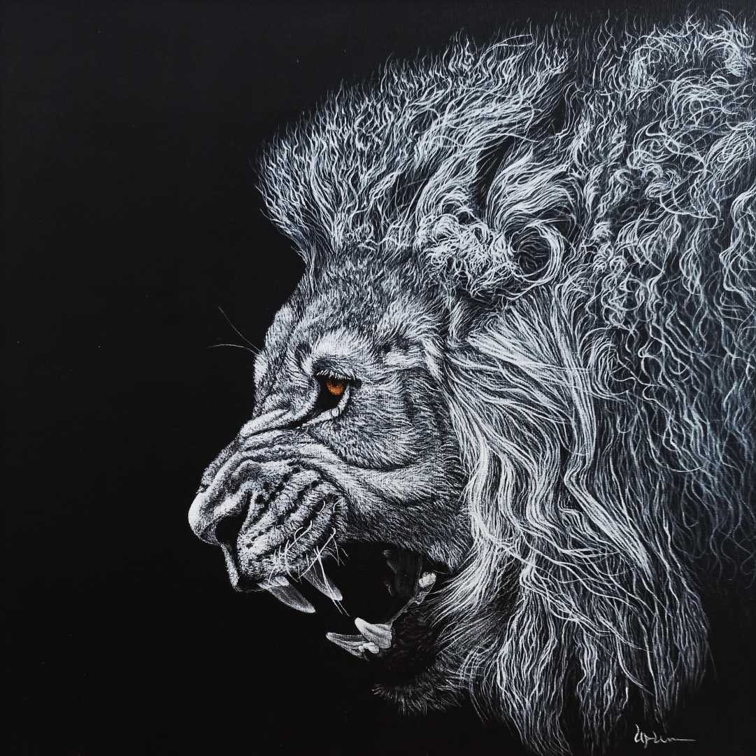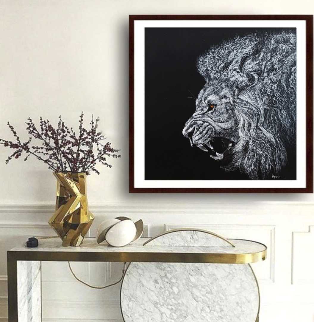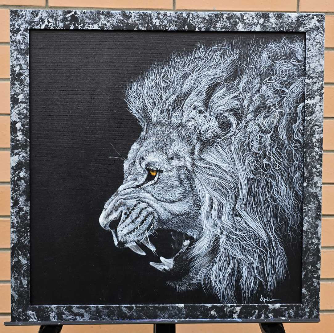 Картина «ЗАЩИТНИКИ. ЛЕВ» выполнена акрилом в жанре реализм.