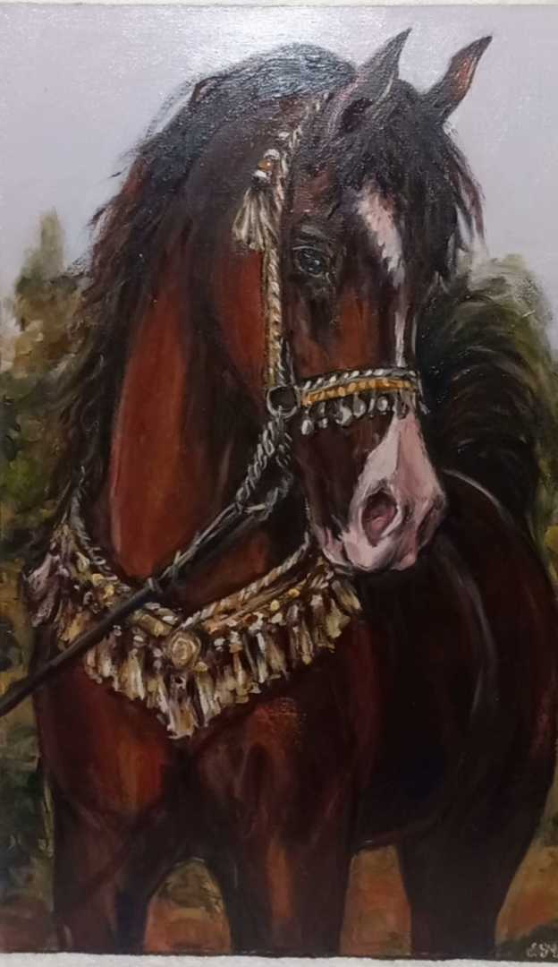 Картина маслом на холсте " Портрет лошади, Жемчужина востока ".