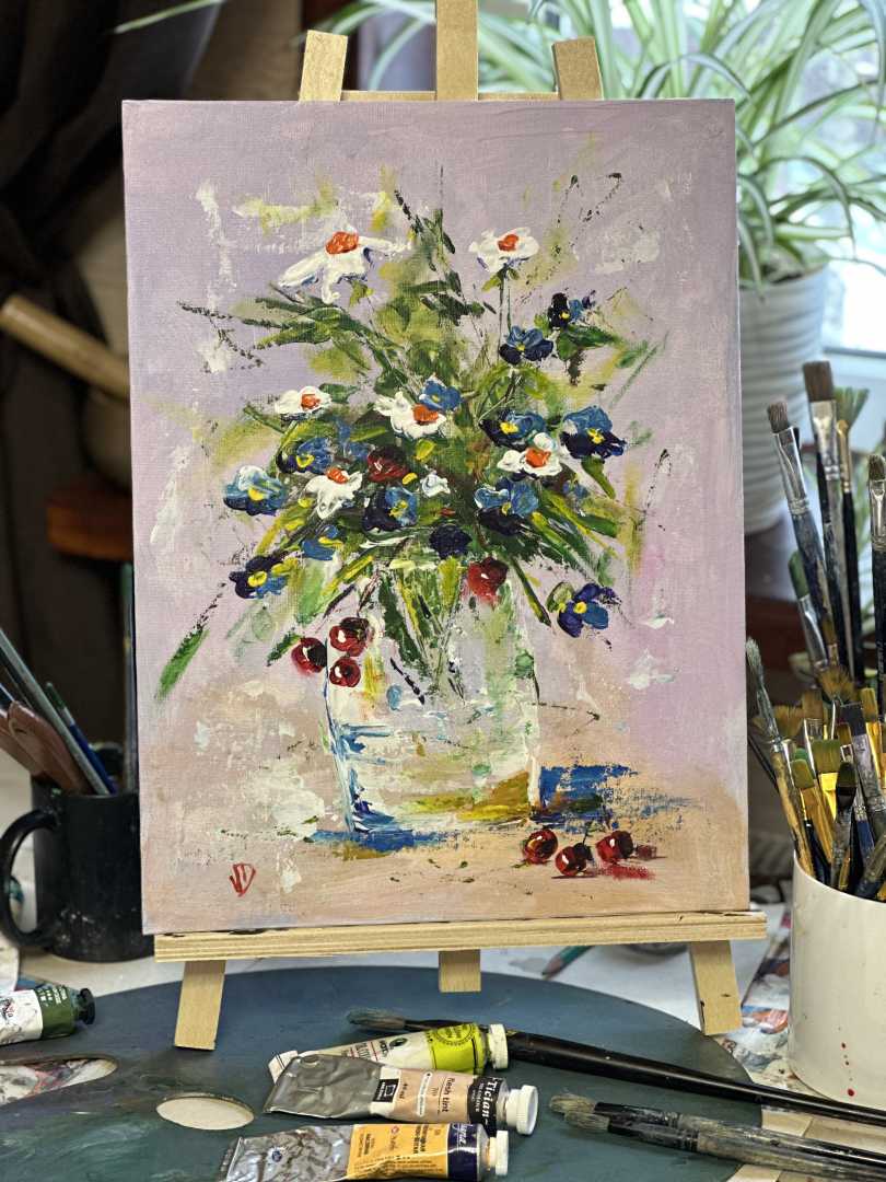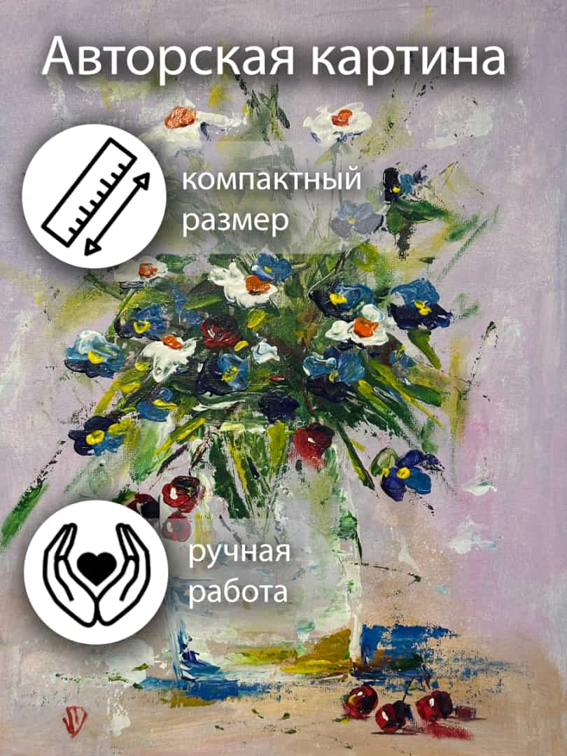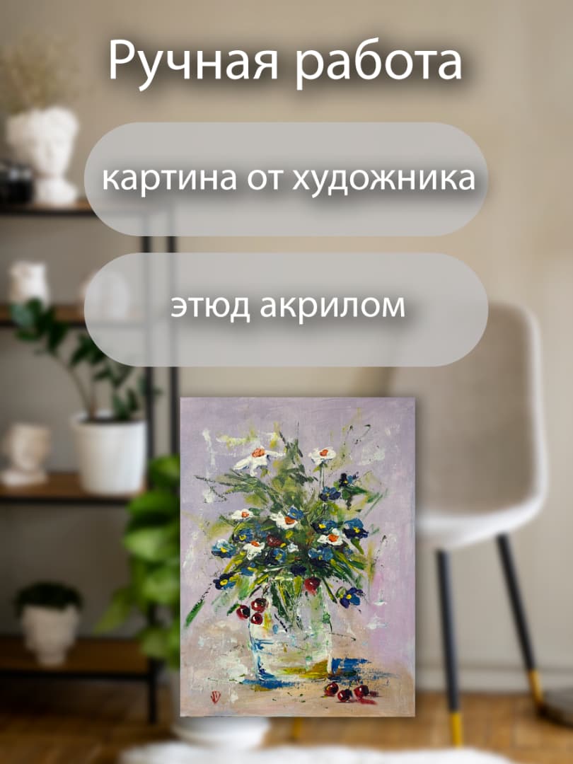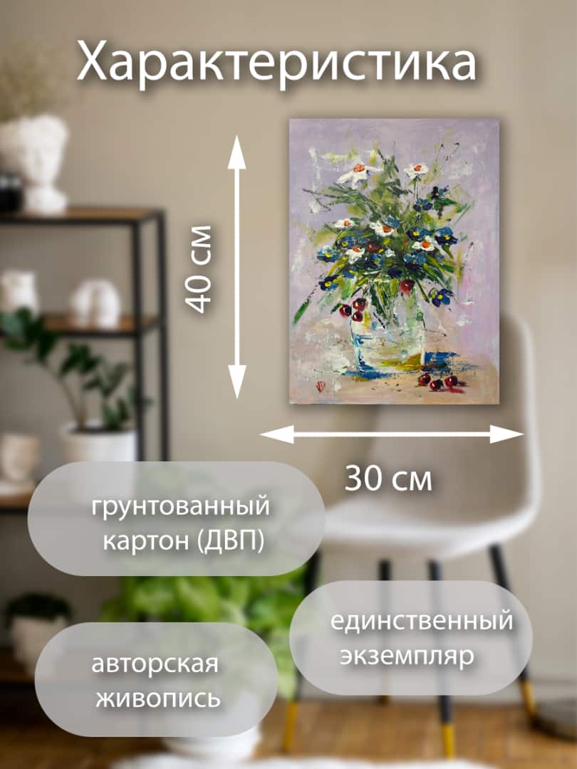 Картина «Июльский полдень: Полевой букет с вишней» — Живая авторская живопись