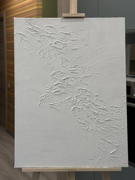 Фактурная картина в молочно-белых оттенках с выразительными рельефными мазками и объемной текстурой. Это картина №2 из серии Гармония, которая состоит из 5 авторских работ. Благодаря игре света и тени картина выглядит живой и добавляет интерьеру глубину, стиль и уют.