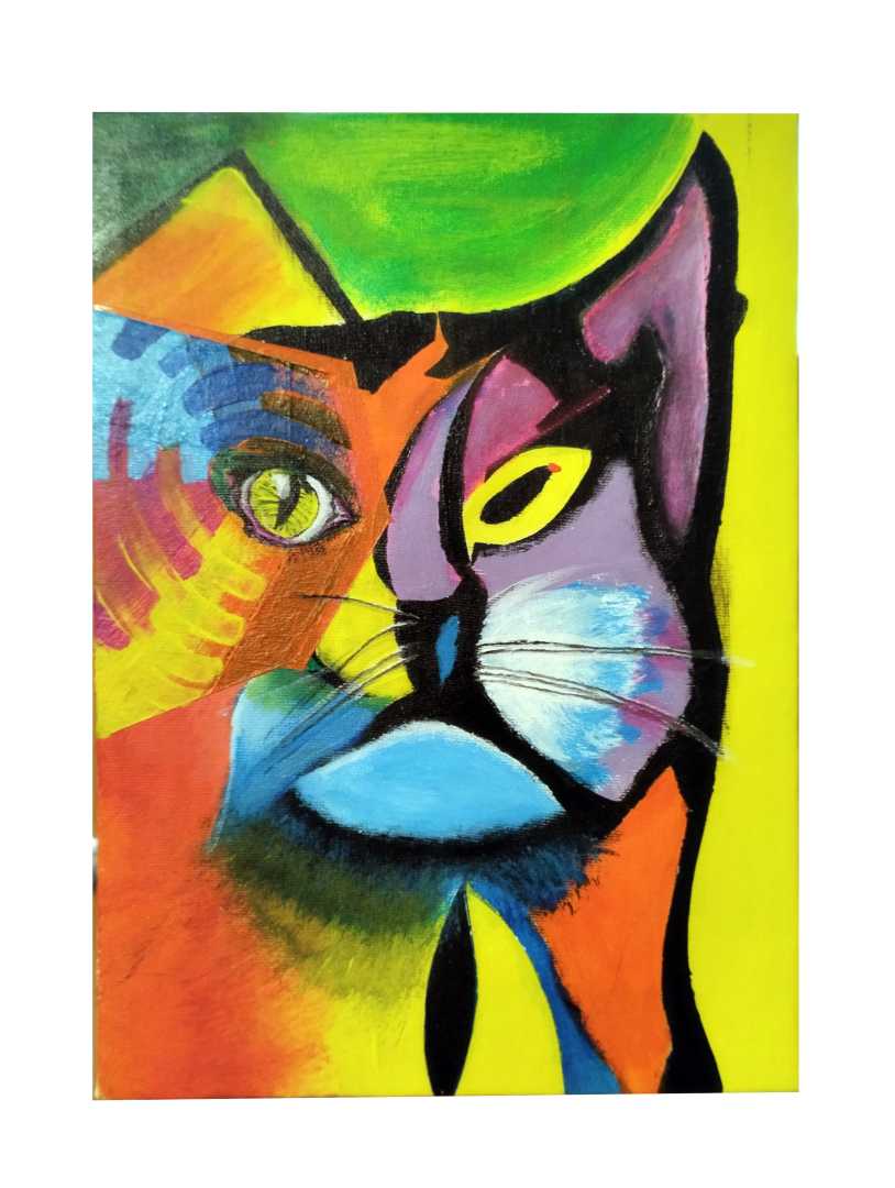 Дизайнерская картина «Кот Хан» — яркая и динамичная работа в стиле современной абстракции. Контрастные цвета, выразительные формы и необычная геометрия создают сильный визуальный акцент и делают картину эффектным элементом современного интерьера. Подойдёт для гостиной, офиса, креативного пространств