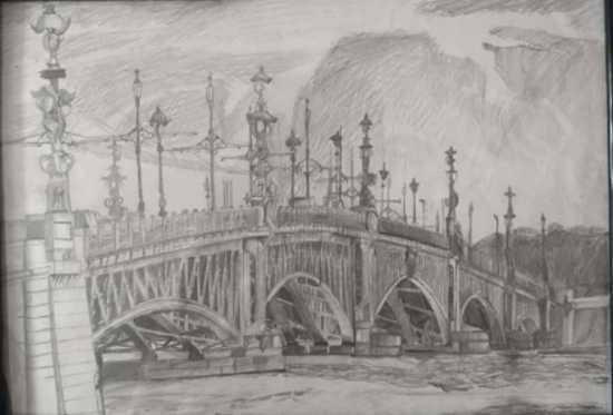 асно-коричневых тонов, что подчеркивает дождливую погоду и создает атмосферу задумчивости. Размытые очертания автомобилей не детализированы, это создается эффект движения. Здесь немного унылая , но в то же время торжественная атмосфера Санкт-Петербурга, любимого города, с богатой историей.