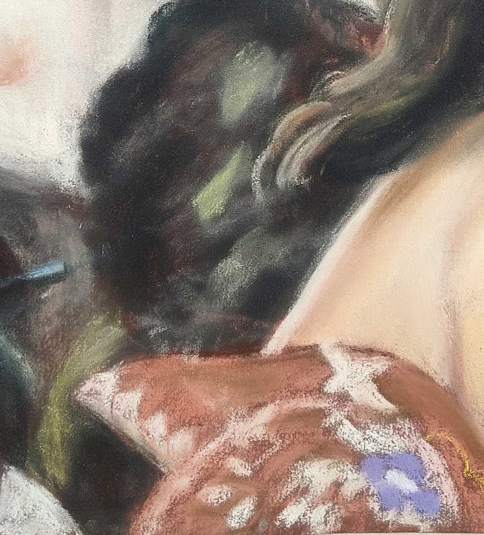 Работа надежно закреплена профессиональным фиксативом Sennelier. Пастель не осыплется и сохранит яркость на десятилетия.