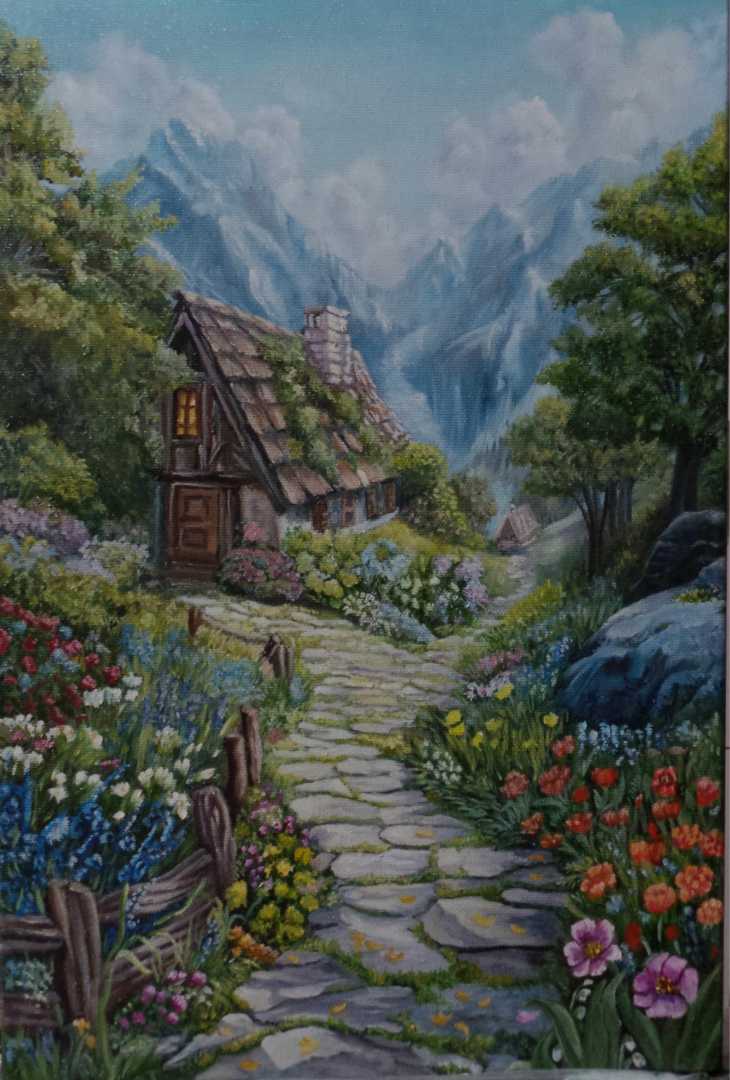 Мое направление в живописи - показать прекрасное, которое рядом. Остановить мгновение и запечатлеть на холсте этот момент. Эта картина показывает состояние тишины и покоя, высоко в горах можно уединиться, отключить телефон и побыть наедине с собой, понять чего хочешь, там глубоко внутри себя найти о