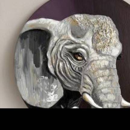 На полотне из глубин африканской саванны, залитой золотисто-оранжевым светом уходящего дня, выходит величественный слон. Его фигура монументальна: я фокусировала внимание на его размере и спокойной уверенности. Солнечные лучи играют на огромных уш