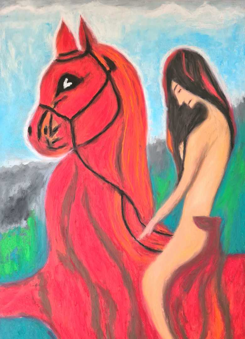 Картина "Будущее", масляная пастель, холст на картоне 50х70 см, 2026 год