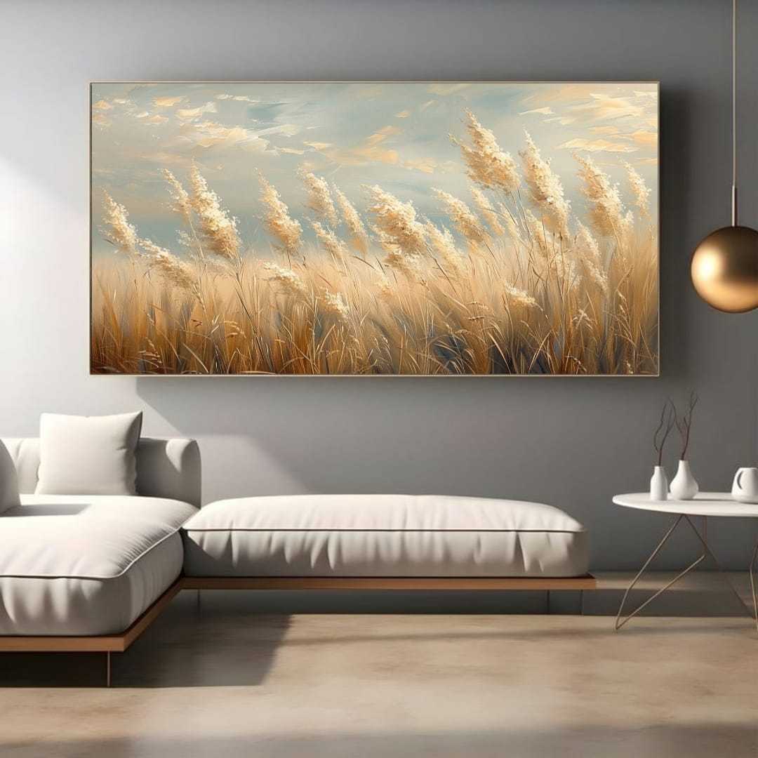 Добавьте тепла и уюта в ваш дом с этой живописной картиной маслом — изображением пшеничного поля. На холсте запечатлено золотое пшеничное поле, которое кажется бесконечным, словно охвачено солнечным светом и ветром. Мягкие, теплые оттенки золота и коричневых тонов создают атмосферу спокойствия, свободы и природной красоты. Эта картина — символ изобилия, труда и гармонии с природой, идеально дополняя любой интерьер, наполняя его уютом и светом.