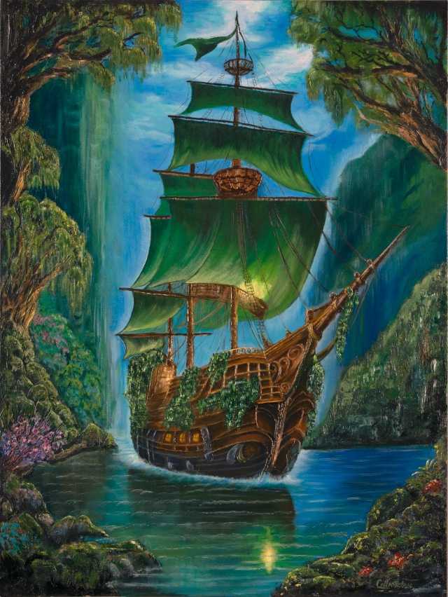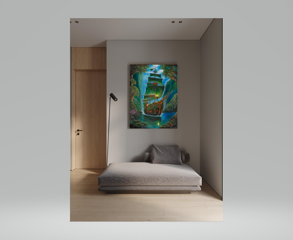 Погрузитесь в мир приключений и свободы с нашей удивительной картиной, написанной маслом и текстурной пастой на холсте! Изображение пейзажа с морем и плывущим кораблем призывает вас отправиться в путь к новым горизонтам и возможностям.