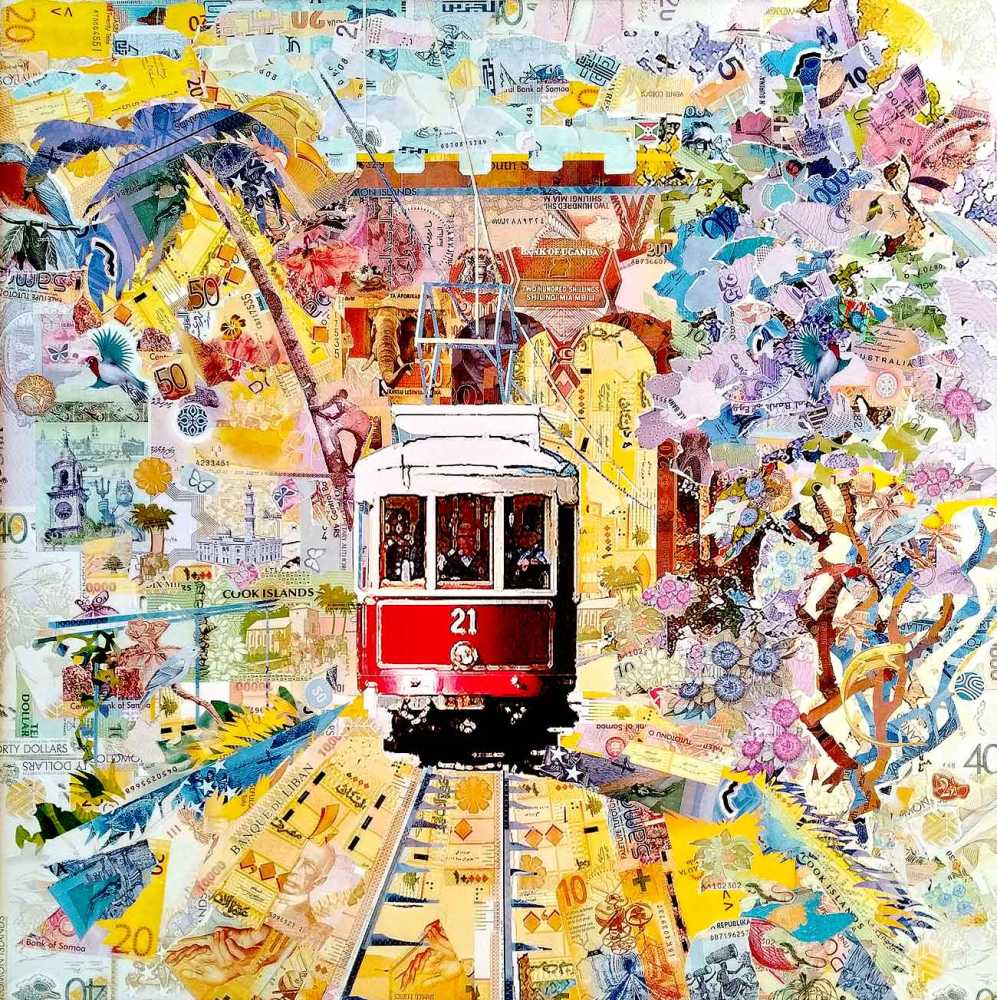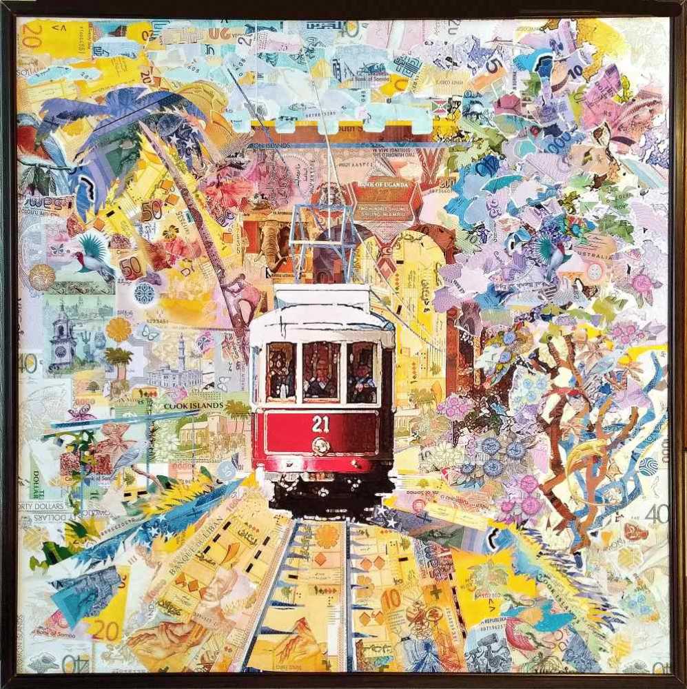 подарком другу, коллеге или начальнику. Картина создана из нескольких тысяч фрагментов изображений купюр, разных стран мира. Каждый фрагмент подбирается с учетом цвета, тона и освещенности того элемента картины, где он займет свое уникальное место. В результате такой кропотливой работы по подбору элементов банкнот и создается современное произведение искусства в технике коллажа. Для создания коллажа «Там где солнце море пальмы и песок» использовались банкноты: Самоа 20 тала, Бутан 1000 нгултрум, Швейцария 10 франков 2016 г, Швейцария 10 франков 2006 г, 1000 мальдивских руфий, 2000 рублей Россия 2000 г. Фиджи 20 долларов 2012г. Мальдивские острова 20 руфий 2015 г.