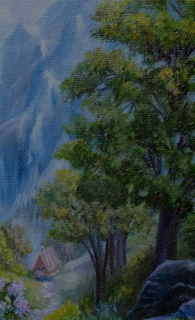 Мое направление в живописи - показать прекрасное, которое рядом. Остановить мгновение и запечатлеть на холсте этот момент. Эта картина показывает состояние тишины и покоя, высоко в горах можно уединиться, отключить телефон и побыть наедине с собой, понять чего хочешь, там глубоко внутри себя найти о