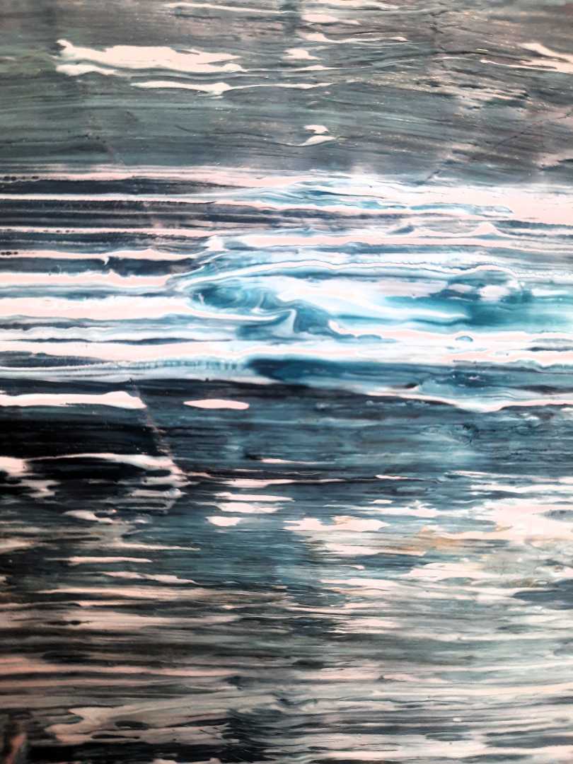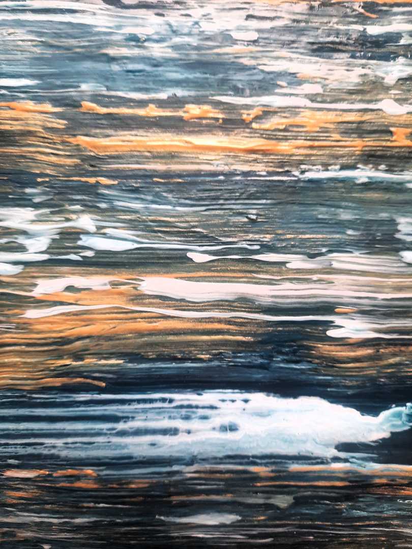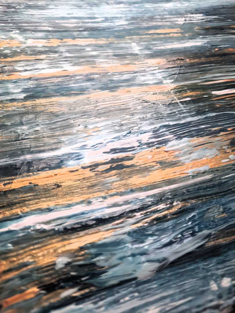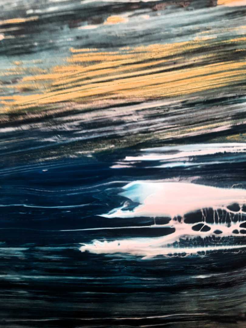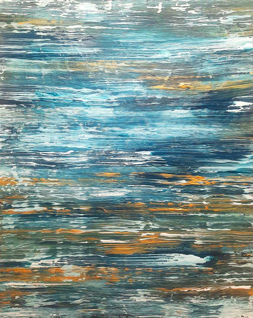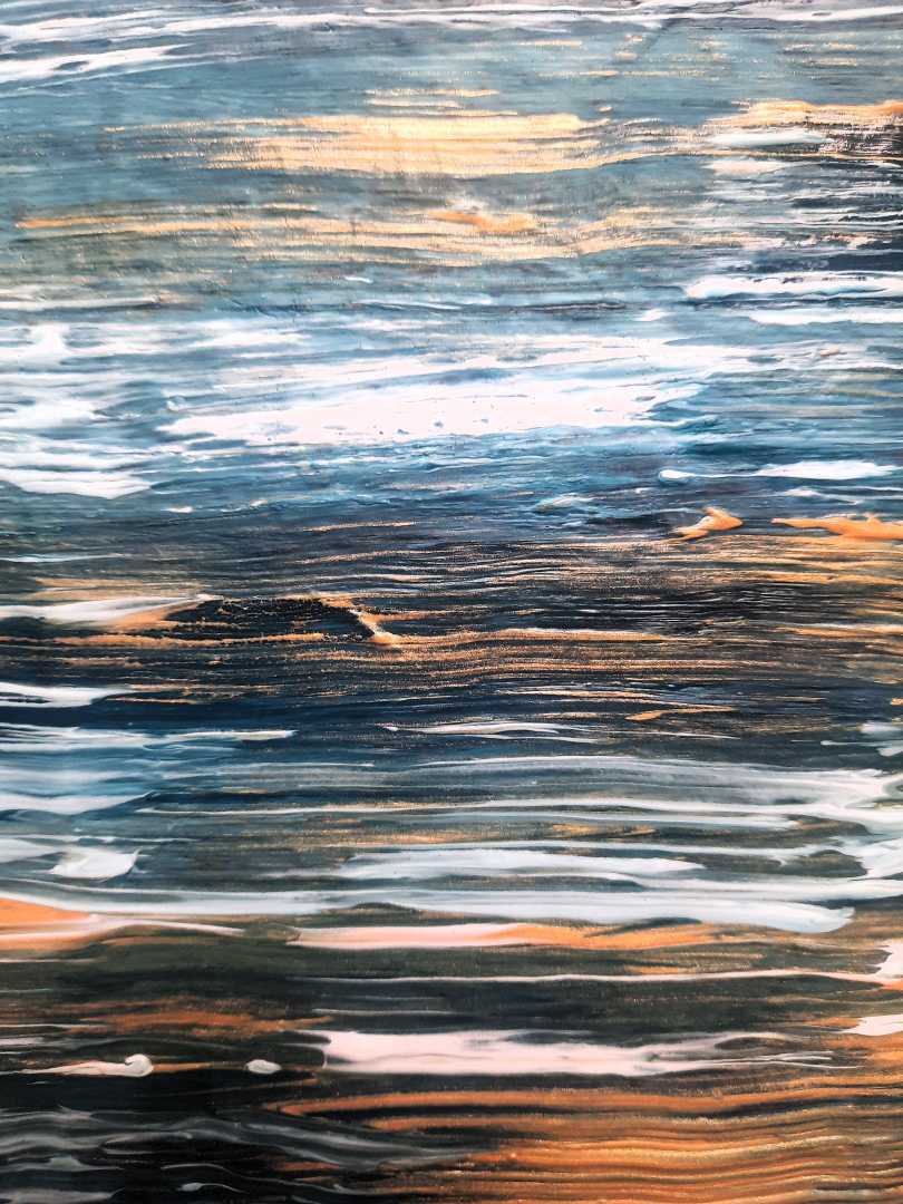 Абстрактная картина, рожденная в диалоге с океаном. Написанная акрилом энергичными, уверенными мазками жесткой кисти, она захватывает динамику водной стихии — то, как она переливается, играет светом и хранит в себе тайны.