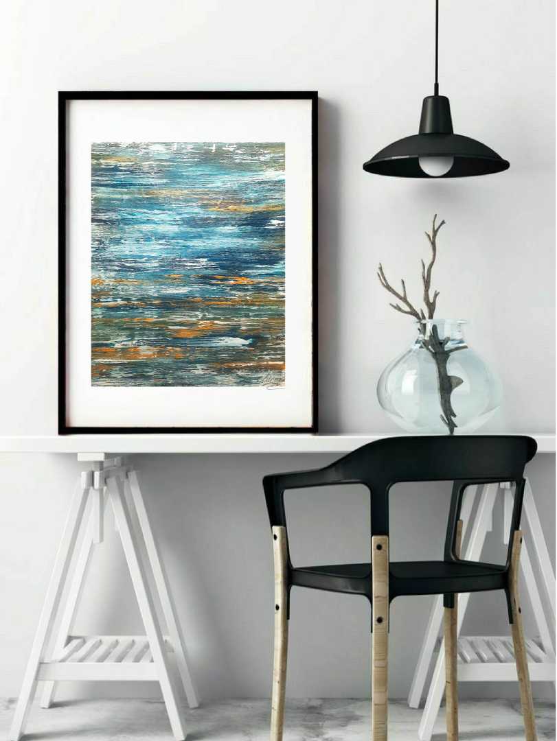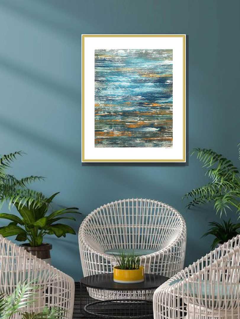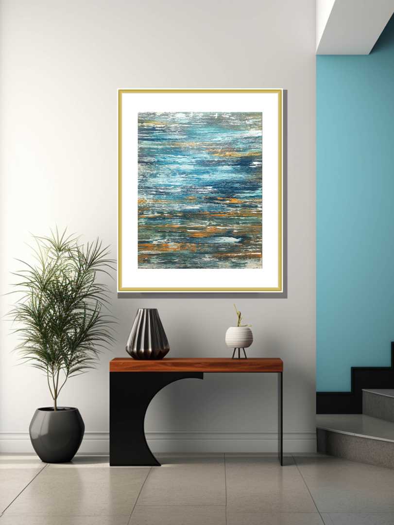 Работа передает не конкретный образ, а само ощущение океана — его мощь, движение, изменчивость и вечное сияние, скрытое в его глубине. Картина добавляет пространству цвета, света и энергии природной стихии.
