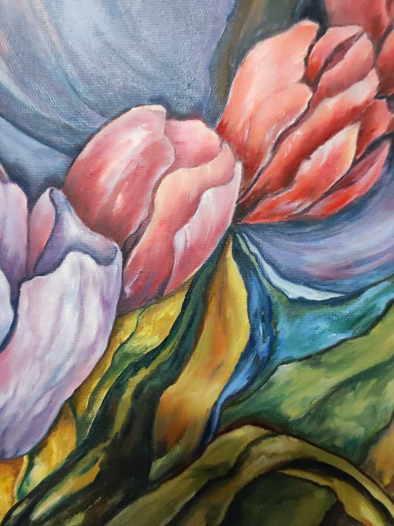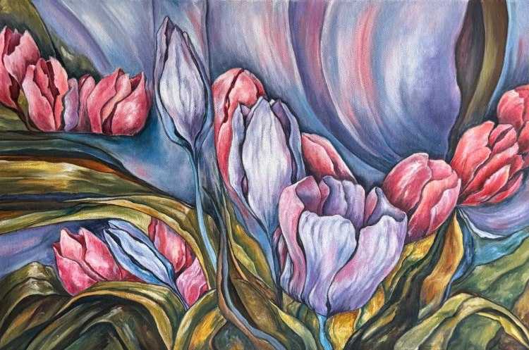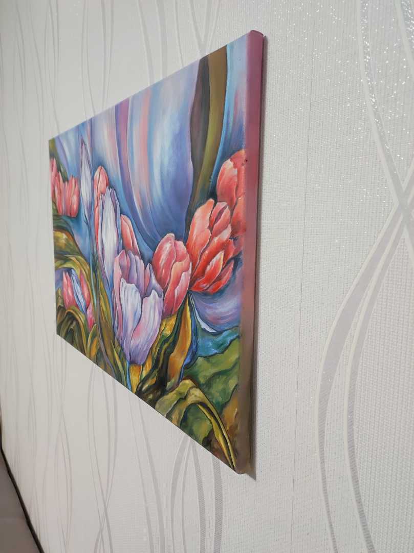 Цветы одна из моих любимых тем в живописи. А тюльпаны - это олицетворение нежности, хрупкости, свежести, они как первые вестники тепла, весны и радости, приносящие с собой обещание чего-то нового и прекрасного.