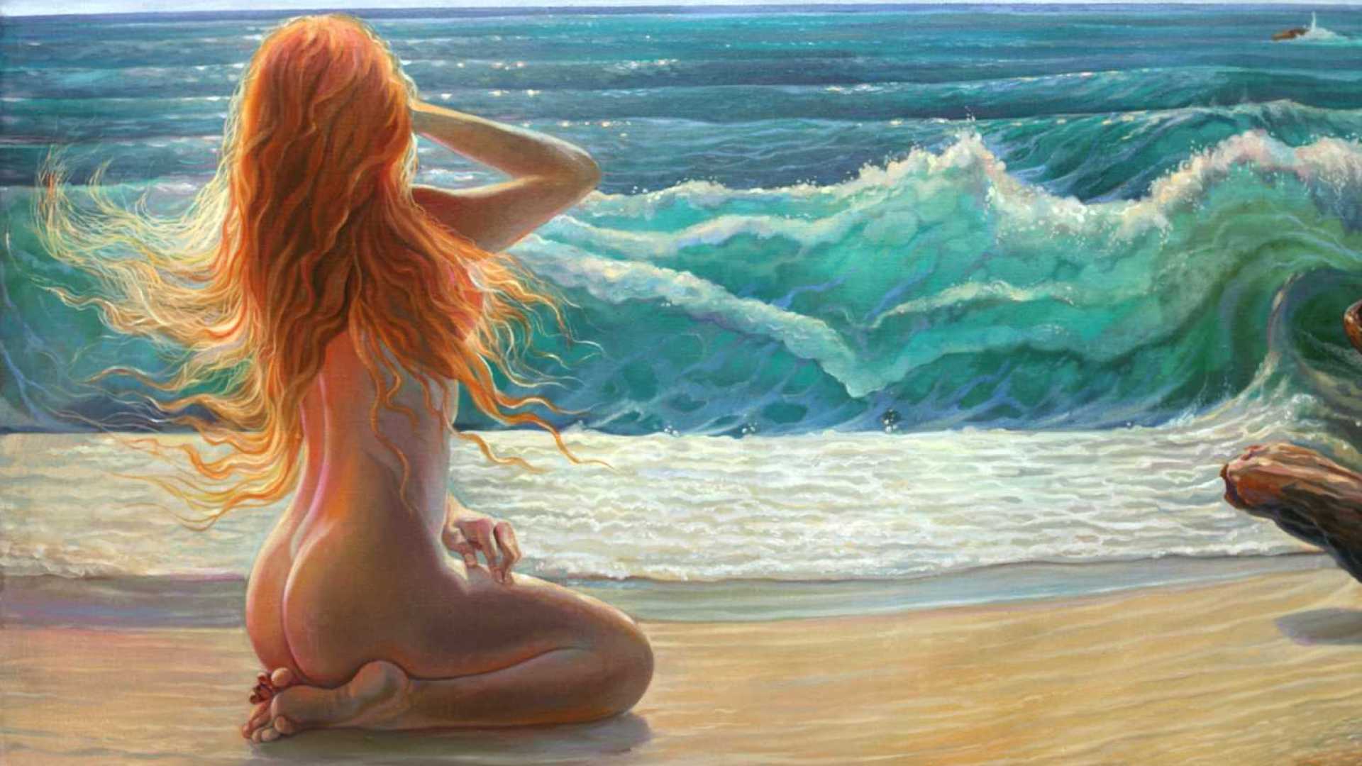 волосах, усиливая динамику морского пейзажа и подчёркивая глубину пространства. Благодаря крупному формату картина становится мощным интерьерным акцентом и наполняет пространство ощущением воздуха, света и движения.