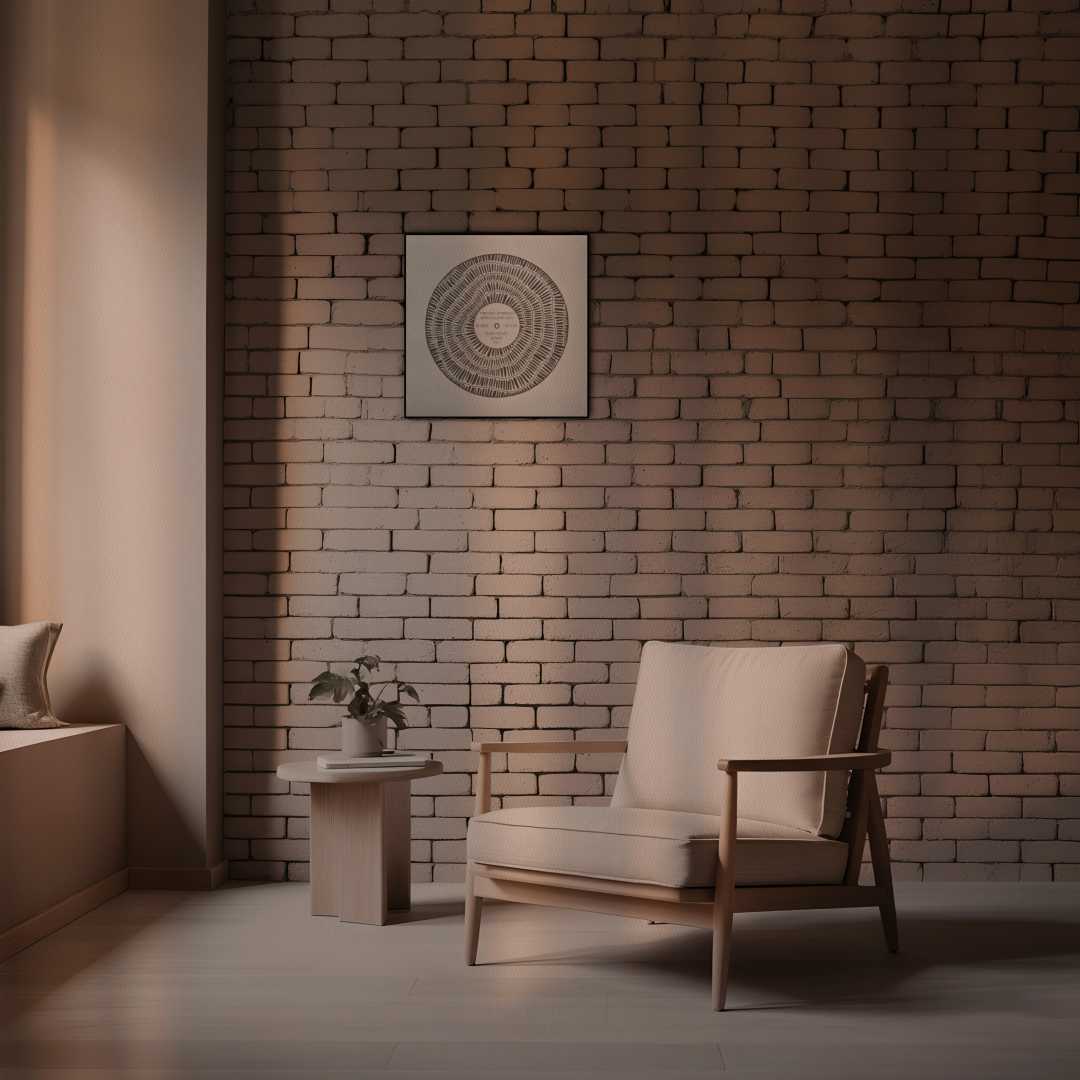 Брутальный монохром в стиле индастриал/минимализм: бетонные стены, панорамное окно с видом на ночной город, минимум мебели (строгое кресло, торшер), виниловый проигрыватель или студийный монитор. Свет — контрастный с длинными тенями от ламп. Атмосфера одиночества, глубины и холодной эстетики.