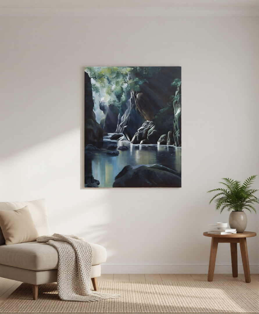 Она придаёт ощущение покоя, помогает отстраниться от суеты и почувствовать энергию живой природы. В интерьере такая работа станет центром внимания — источником свежести, глубины и мягкого света. Это не просто пейзаж, а окно в мир, где царят чистота, равновесие и вдохновение.