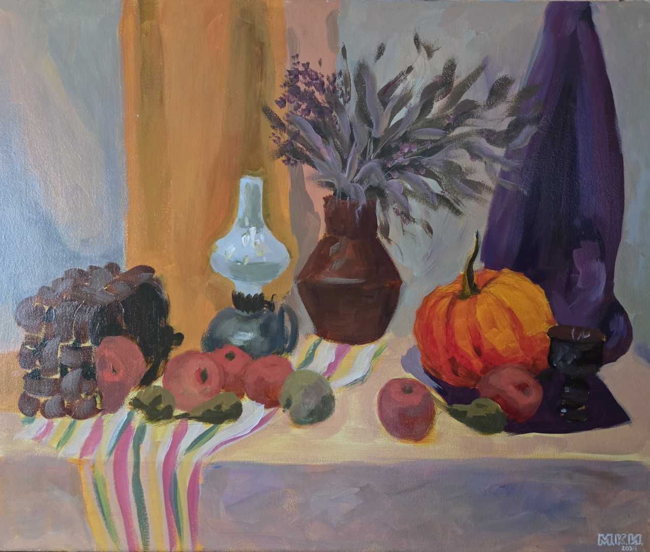 Студенческая постановка. Этюд. Акрил. 2024 г. Покрыта лаком. Основа плотный картон. Точный размер 60.2 х 50.1 . Без рамы.