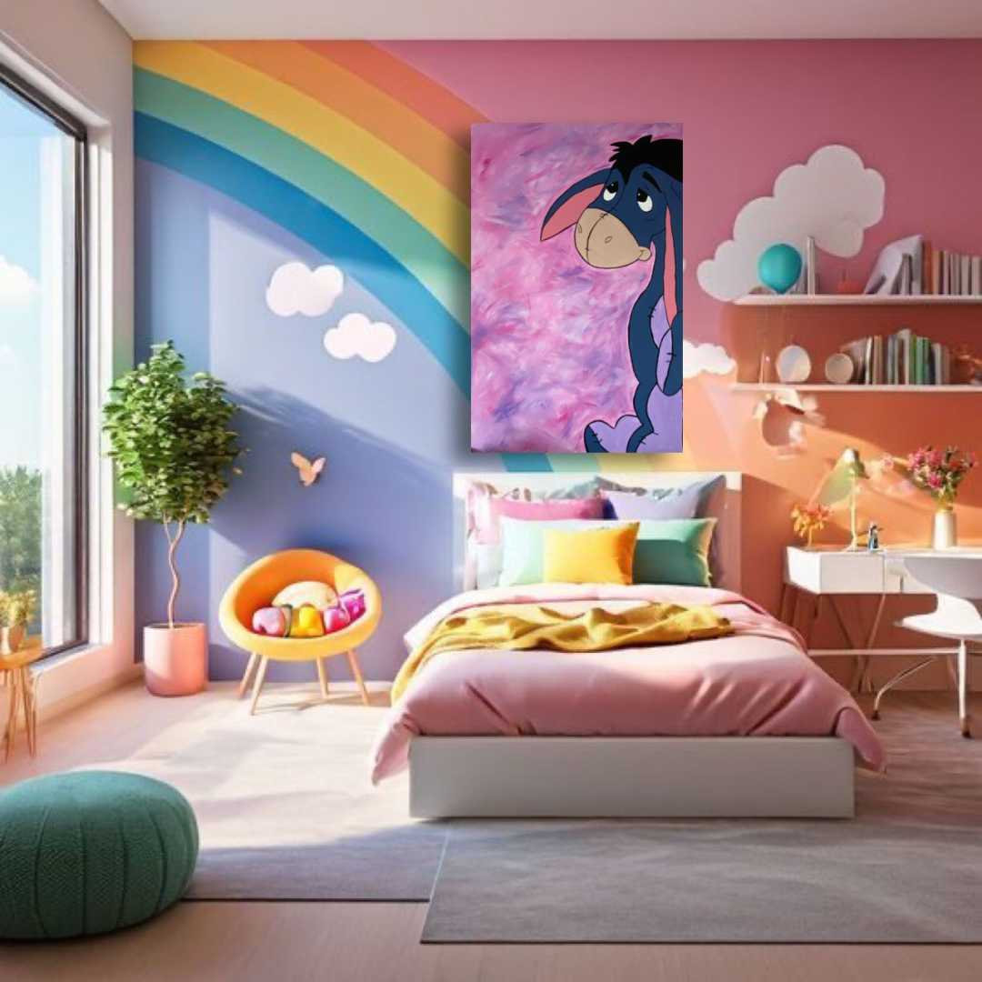 Картина «Задумчивый ослик» — трогательная и нежная работа, которая создаёт атмосферу уюта и спокойствия в детской комнате.