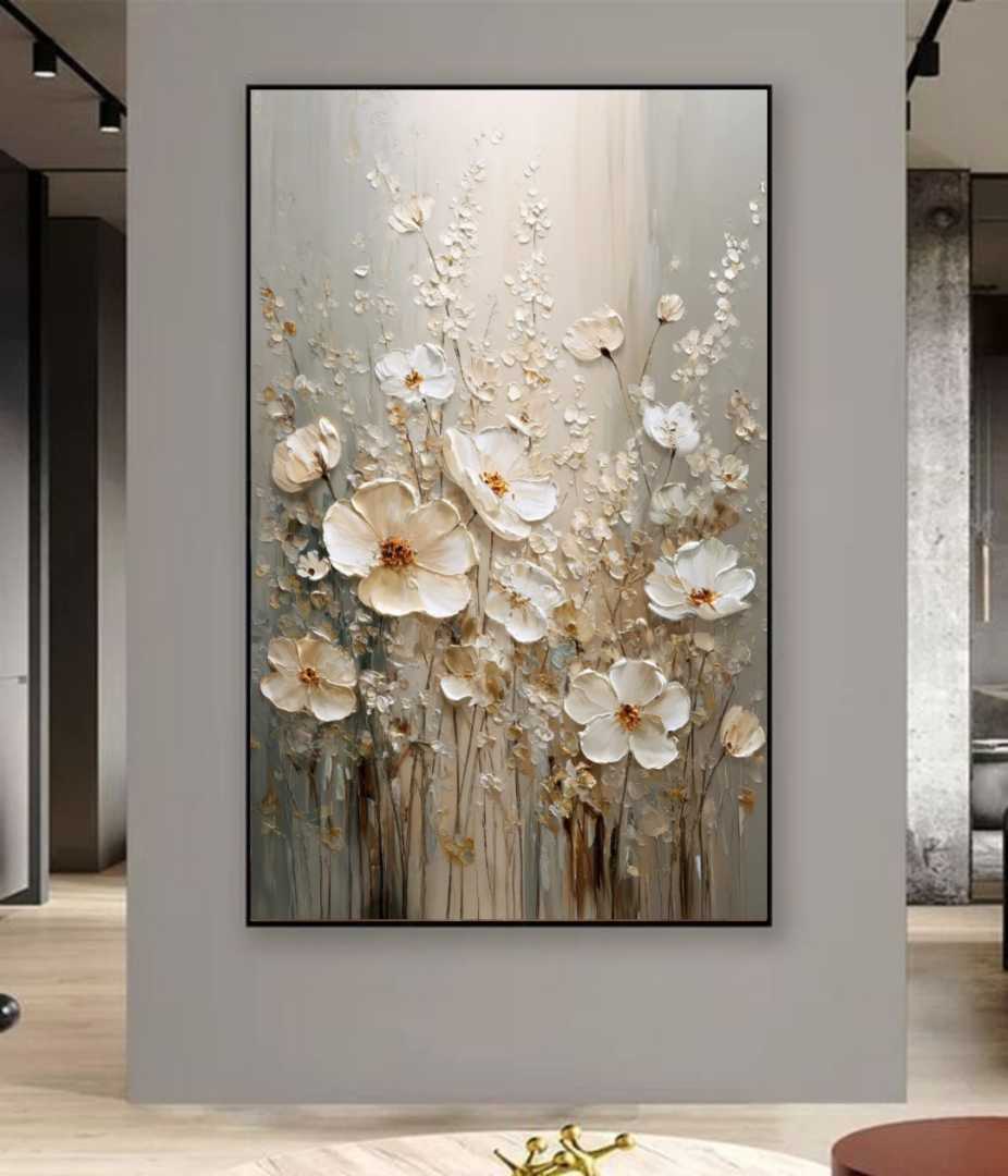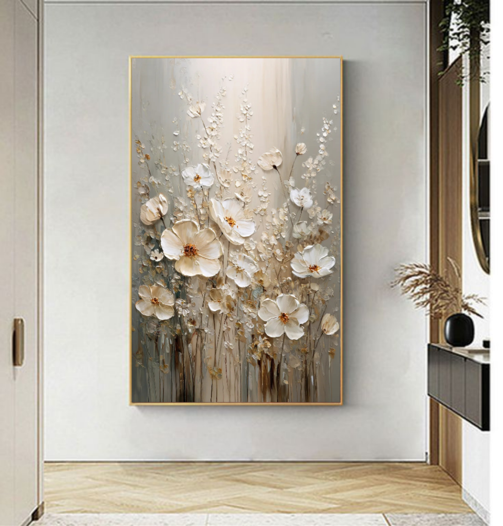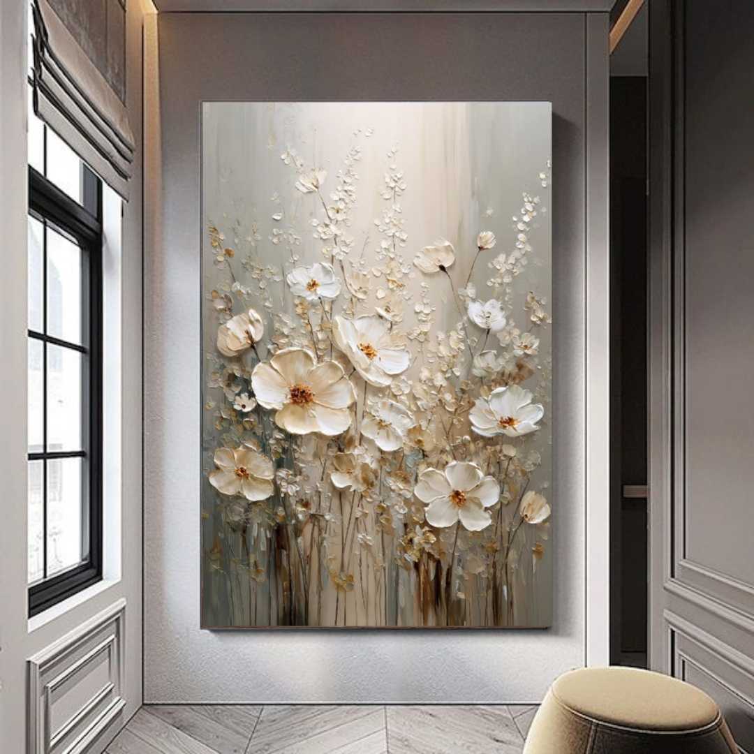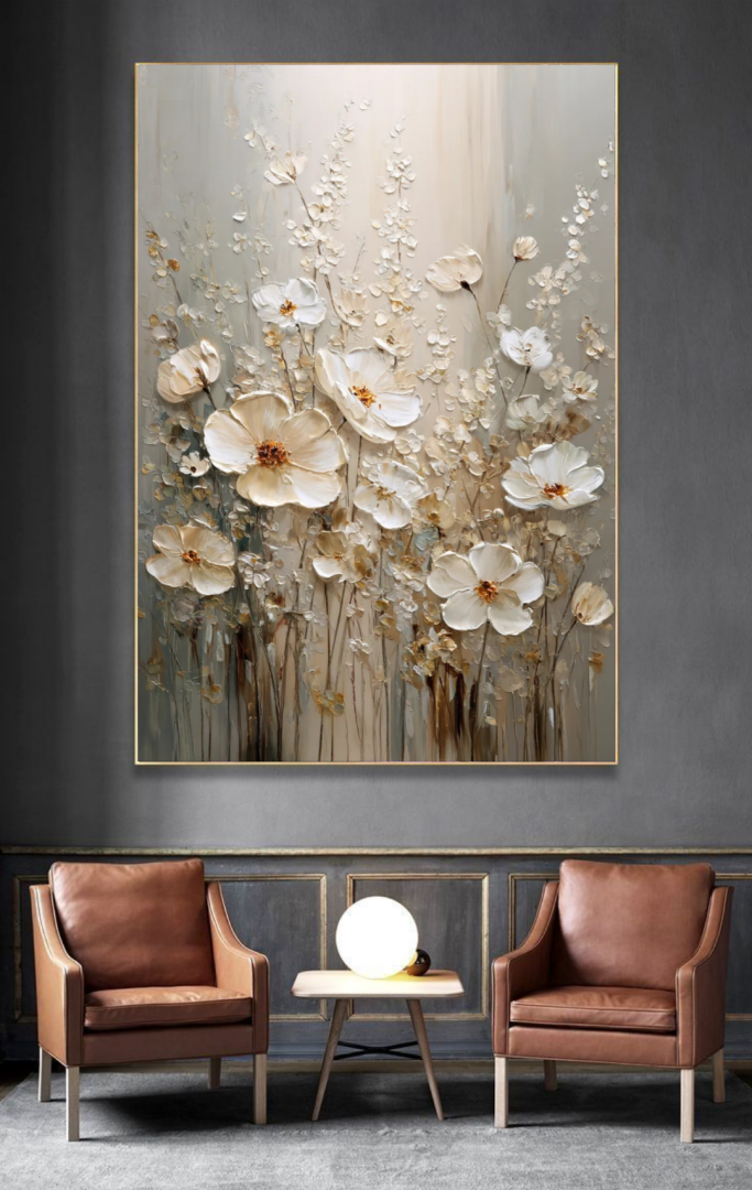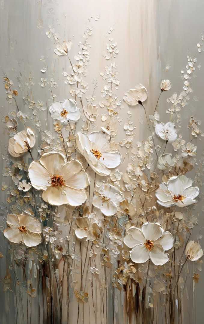 мерцающих золотых акцентов создают атмосферу изящества, гармонии и благородства. Каждое прикосновение мастихина добавляет уникальную текстуру и выразительность, превращая картину в настоящее художественное чудо.