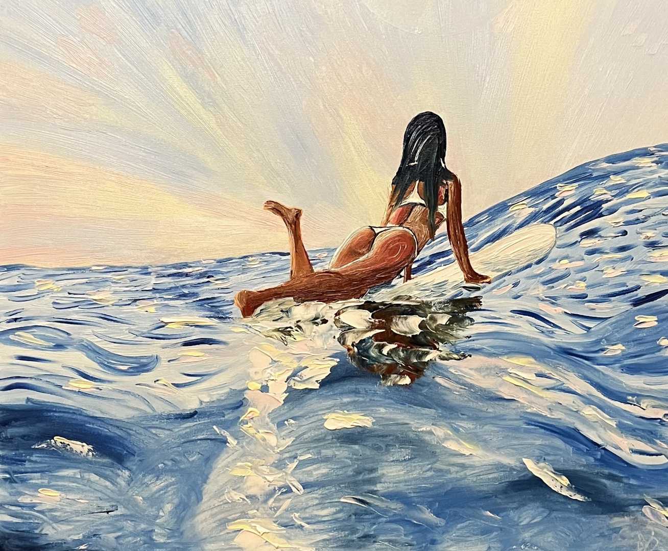 ая волна вызывает у неё надежду — она ожидает идеальную, которая поднимет её и подарит ощущение свободы и скорости. Время словно останавливается, и она полностью погружена в момент, готовая к тому, чтобы поймать волну и начать свое плавание.