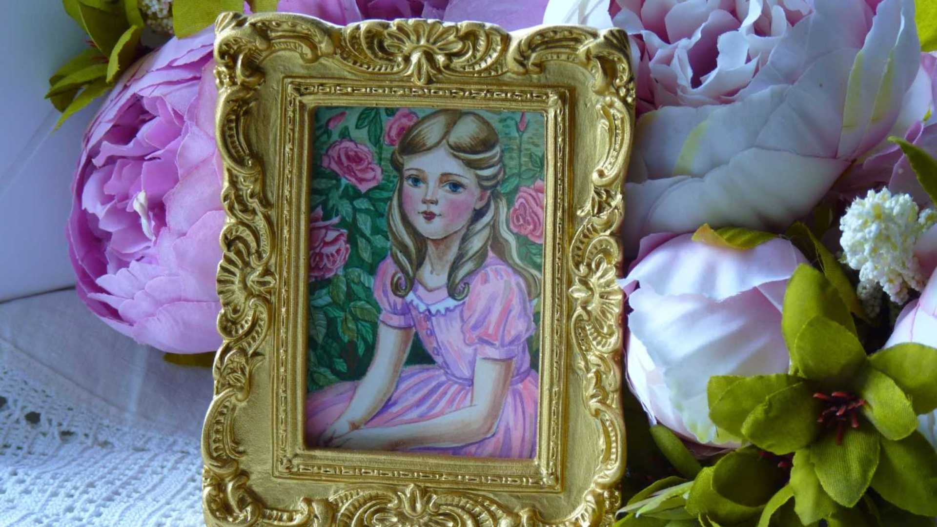 Картина "В саду" станет идеальным выбором для тех, кто ценит винтажный стиль и нежные трогательные образы. Очаровательная девочка в нежно-розовом платье, сидящая среди пышных кустов роз. Её задумчивый взгляд и лёгкая улыбка создают атмосферу безмятежности и детской невинности. Работа оформлена в раз